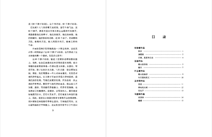 本书是一本儿童诗集,精选了60个孩子的100多首作品,小作者们用诗的语言来表达他们的所见所闻、所思所想,对世界的认知和对生活的热爱。他们笔下的春夏秋冬有神奇的魔力,他们眼中的花草树木有丰富的情感,他们对家人朋友更有满满的爱。