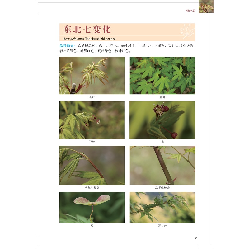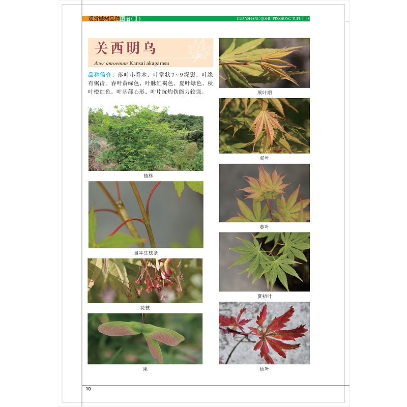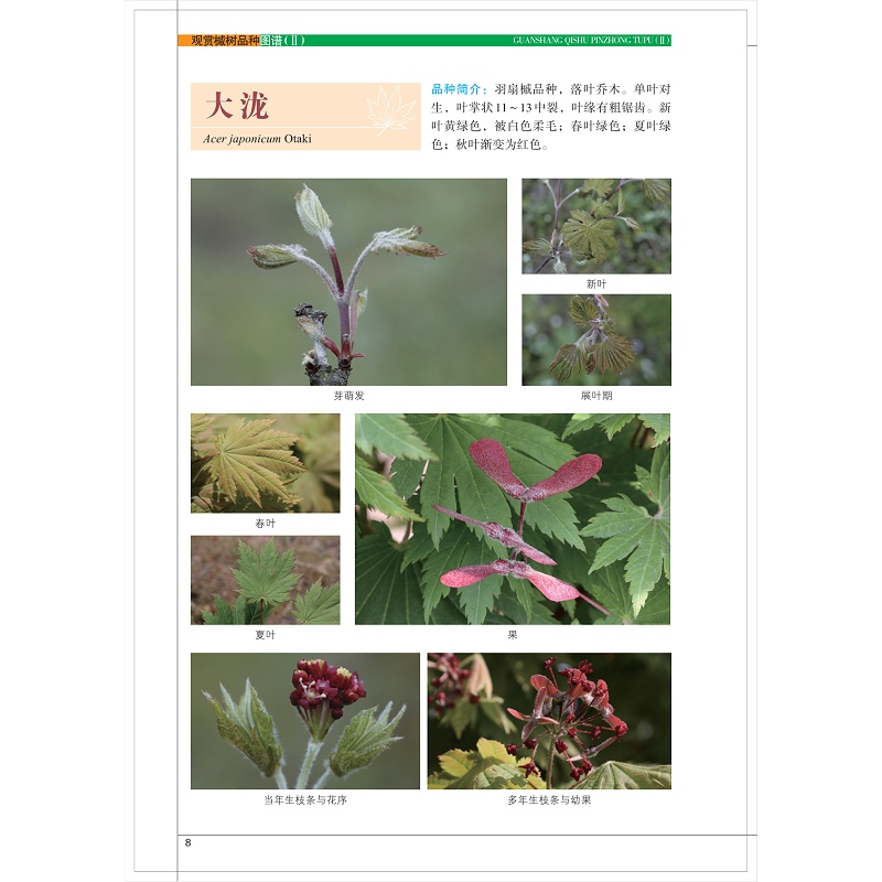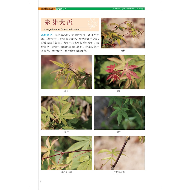 2017年6月,作者在浙江大学出版社出版了《观赏槭树品种图谱》(林乐静、祝志勇著),该书展示了181个槭树园艺品种生物学特性,本书在此书基础上新增了160个槭树园艺新品种,用彩色图谱展现了各种(品种)树形、不同季相叶色、花、果实等,并对其生物学特征进行简单描述。本书图文并排,彩色印刷,适合绿化苗木生产者、林业工作者、大专院校园林园艺学生、科研院所植物资源研究人员、园林绿化公司、景观设计院、森林公园及城市公园管理者等阅读。