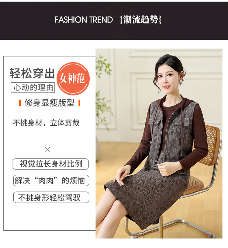 QYM F180-Y两件套妈妈装时尚中长款连衣裙 商品图3