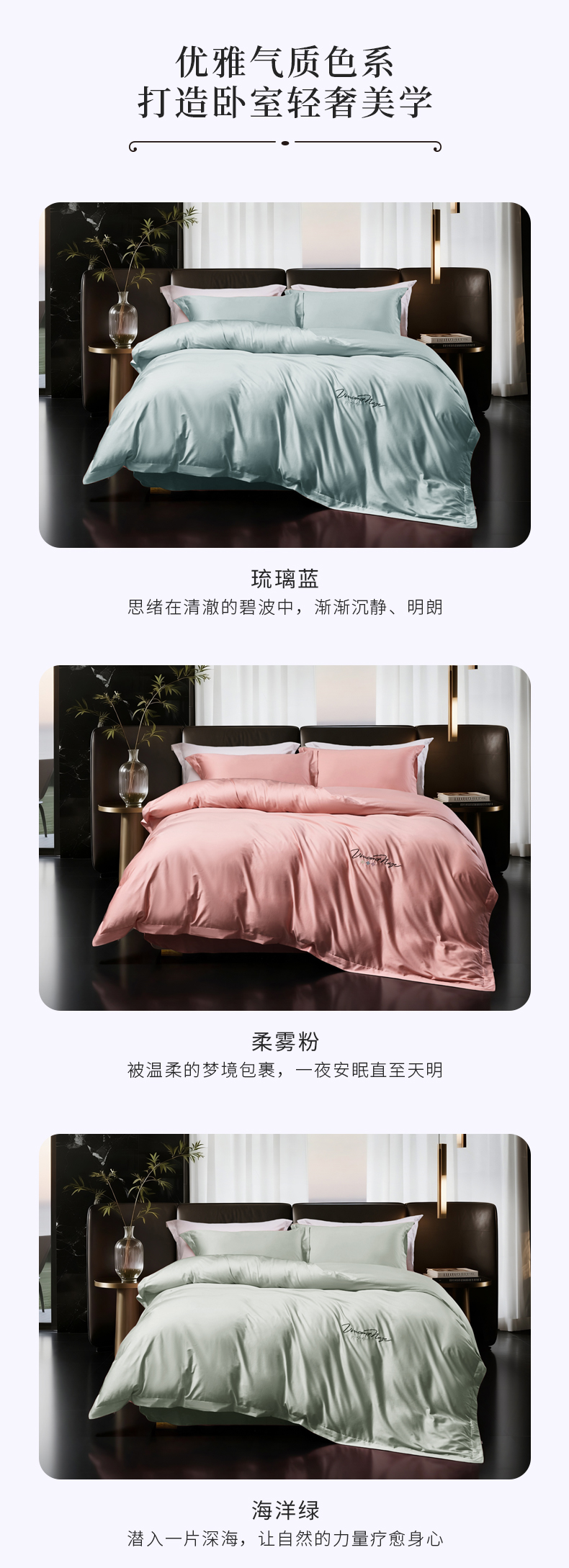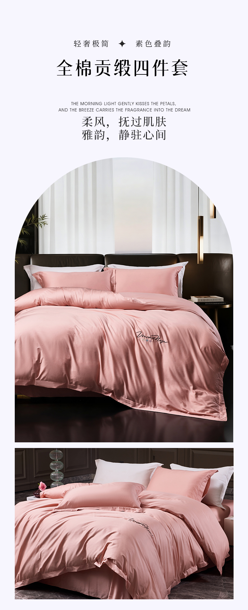 多喜爱 柔风雅韵全棉贡缎四件套 海洋绿/柔雾粉/琉璃蓝/柚子金/水墨灰/穹顶蓝hl【60S全棉】【精美刺绣】【细腻柔滑】 轻奢极简 礼盒包装