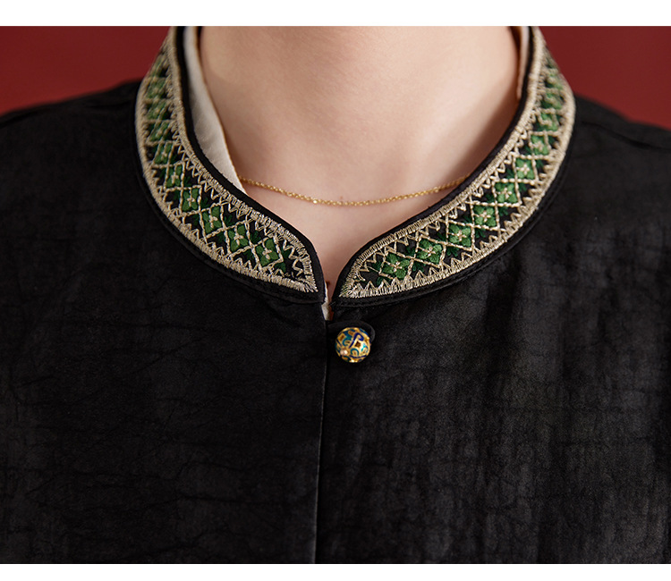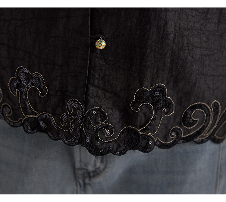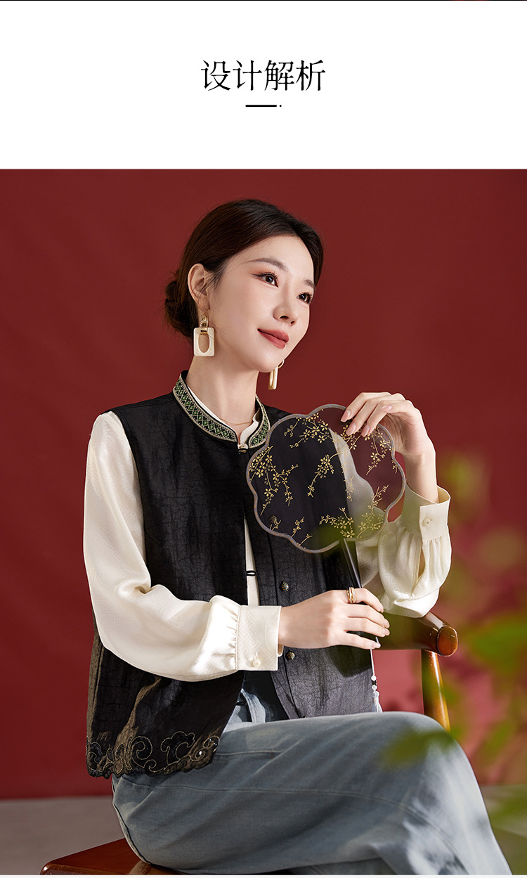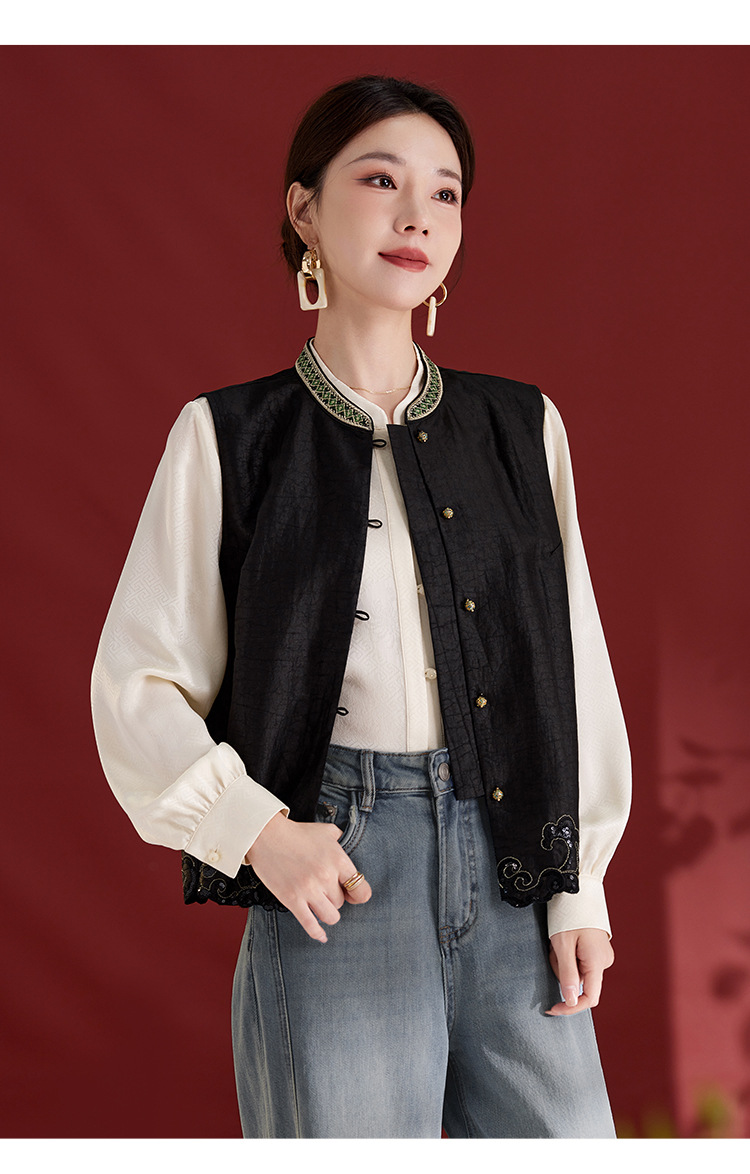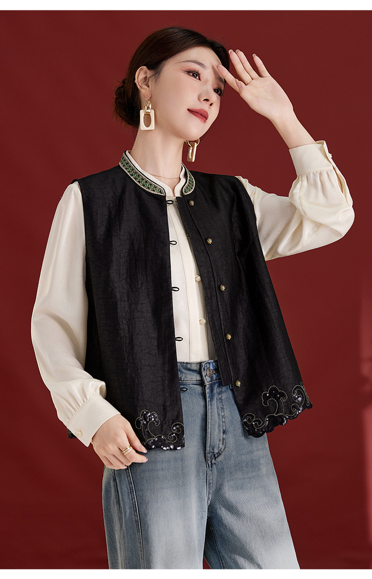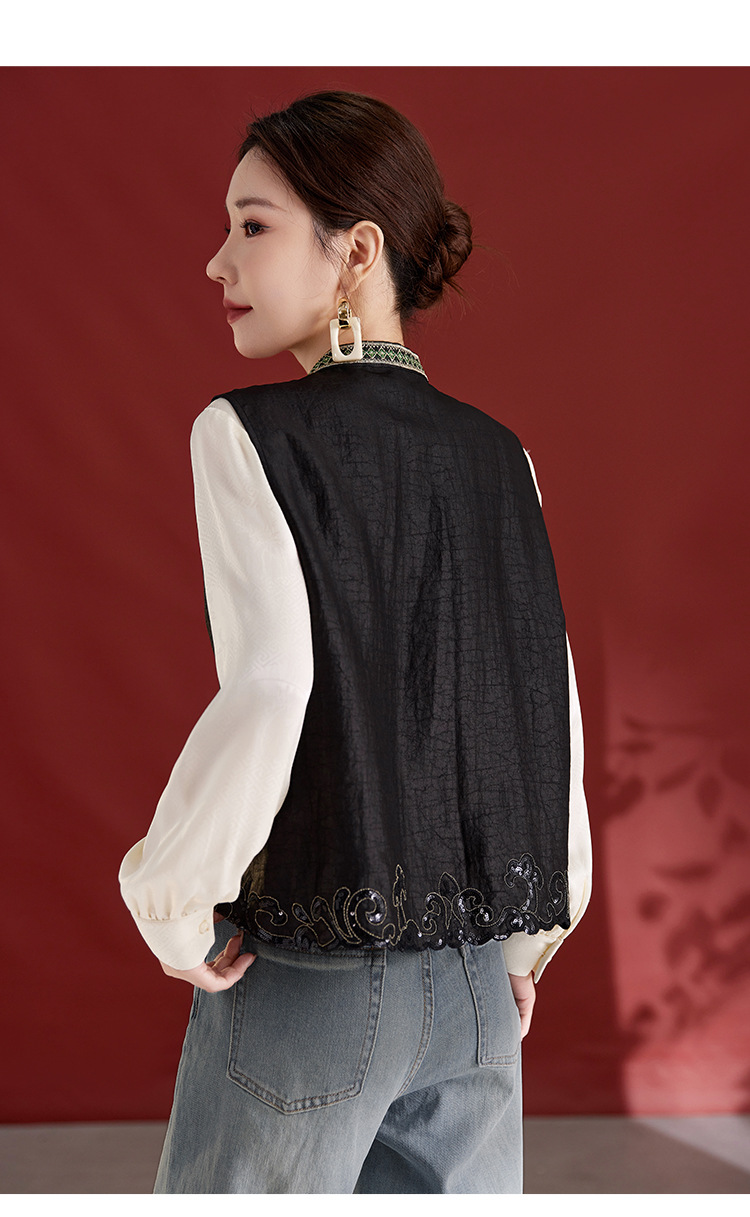 QS【翠影依依】重磅桑蚕丝香云纱龟纹老料无袖刺绣马甲短款上衣1767