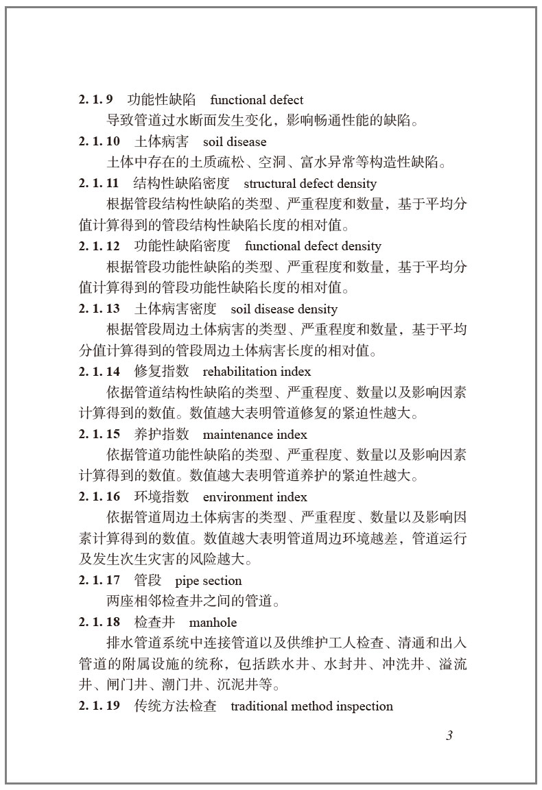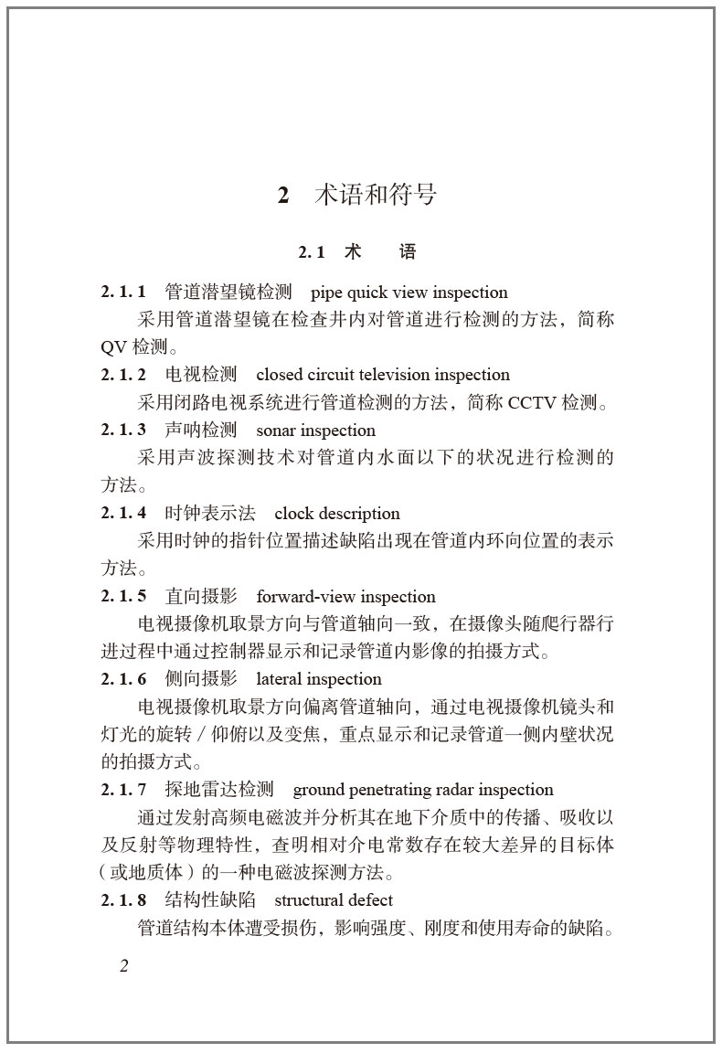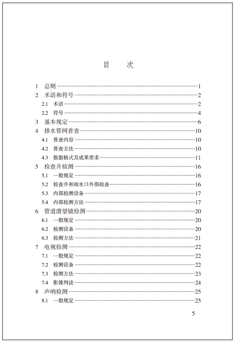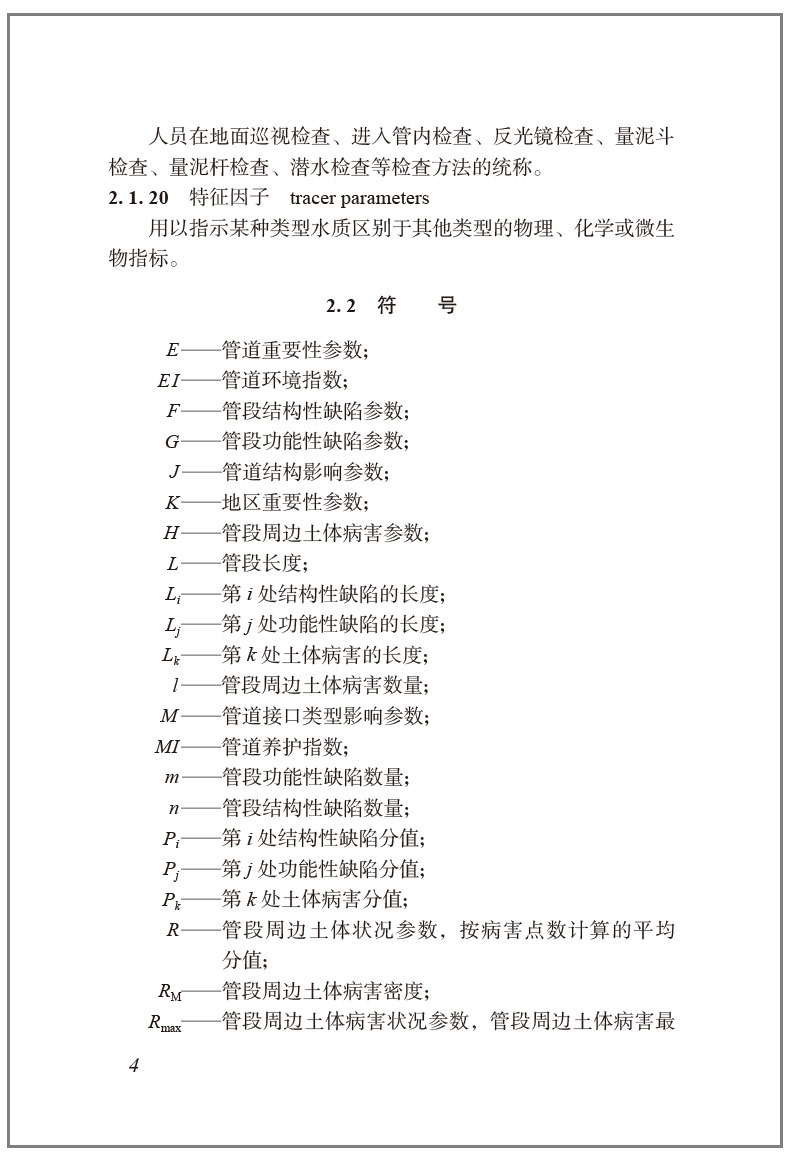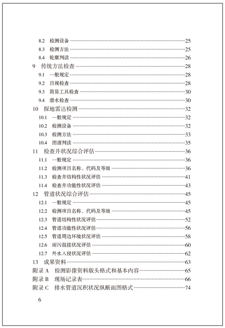 为全面提高天津市城镇排水管道设施运行质量,保障排水管道设施安全平稳运行,规范检测与评估工作,经过调查研究和征求意见,结合天津地区城镇排水管网实际情况制定本规程。根据天津市市政公路行业协会下达的《城镇给水管道穿插软管内衬法非开挖修复技术规程》编制任务要求,由天津安纳赛能源科技有限公司承担《城镇给水管道穿插软管内衬法非开挖修复技术规程》团体标准的编制工作。本规程的主要技术内容分为:1.总则;2.术语和符号;3.基本规定;4.排水管网普查;5.检查井检测;6.管道潜望镜检测;7.电视检测;8.声纳检测;9.传统方法检查;10.探地雷达检测;11.管道状况综合评估;12.成果资料;附录。