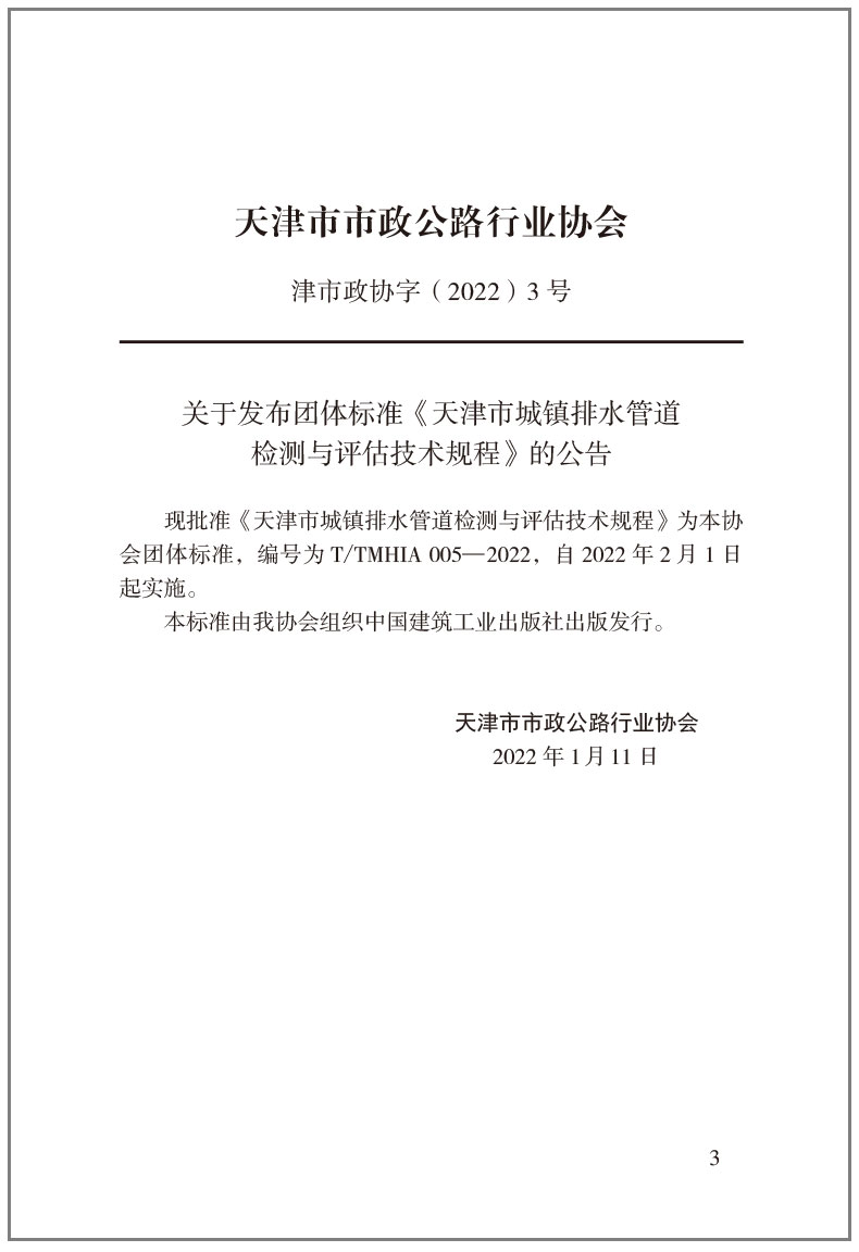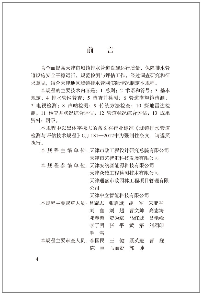 书名:天津市城镇排水管道检测与评估技术规程T/TMHIA005-2022