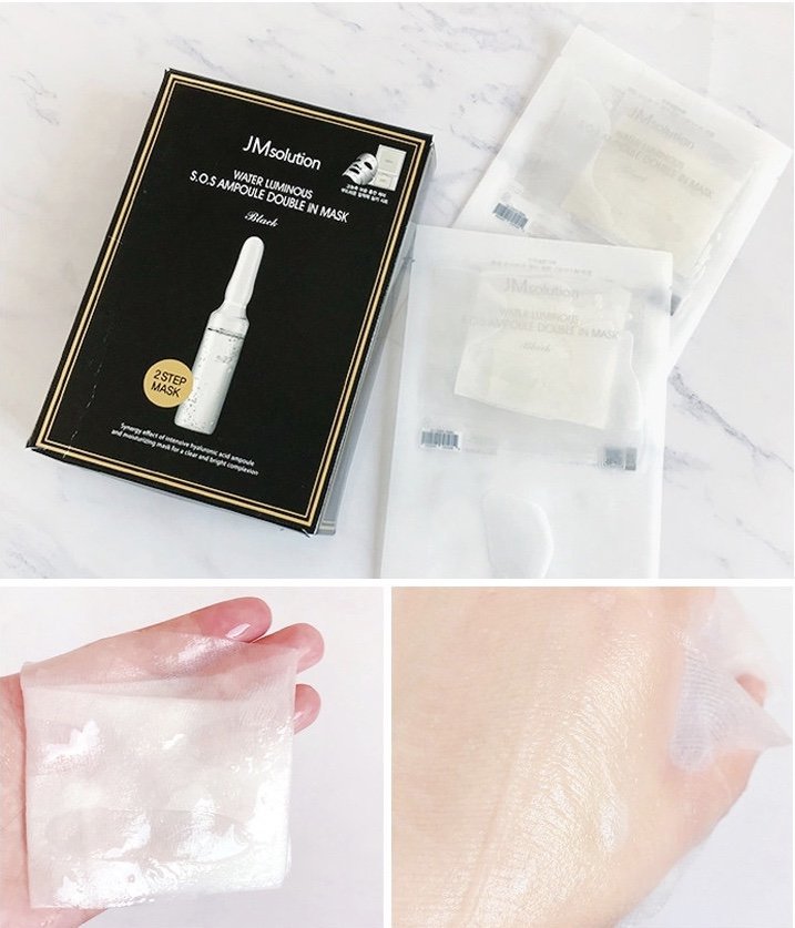 JM solution水光急救双效精华2步面膜👍水光玻尿酸安瓶二合一面膜,在原来的补水安瓶上再升级⬆,将一整瓶美白精华灌溉进肌肤里面。主打补水保湿,紧致肌肤,提亮肤色。帮助你告别暗沉🙌,切断黑色素生成路径,还能淡化现有的斑点,改善细纹,使你的脸充满粉嫩活力🤩,重现初恋脸。特别适合极度缺水、松弛无光的肌肤使用。