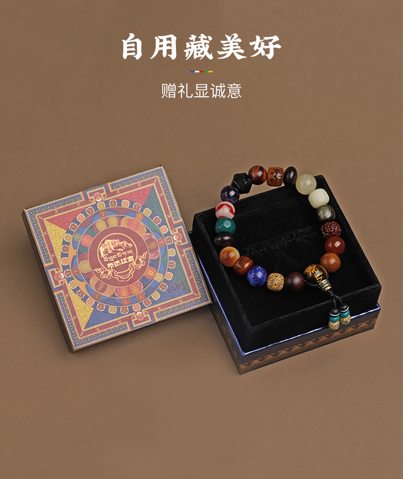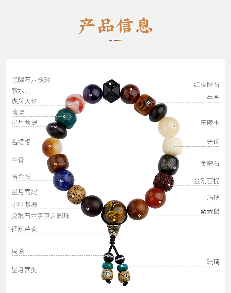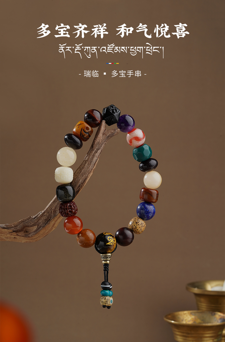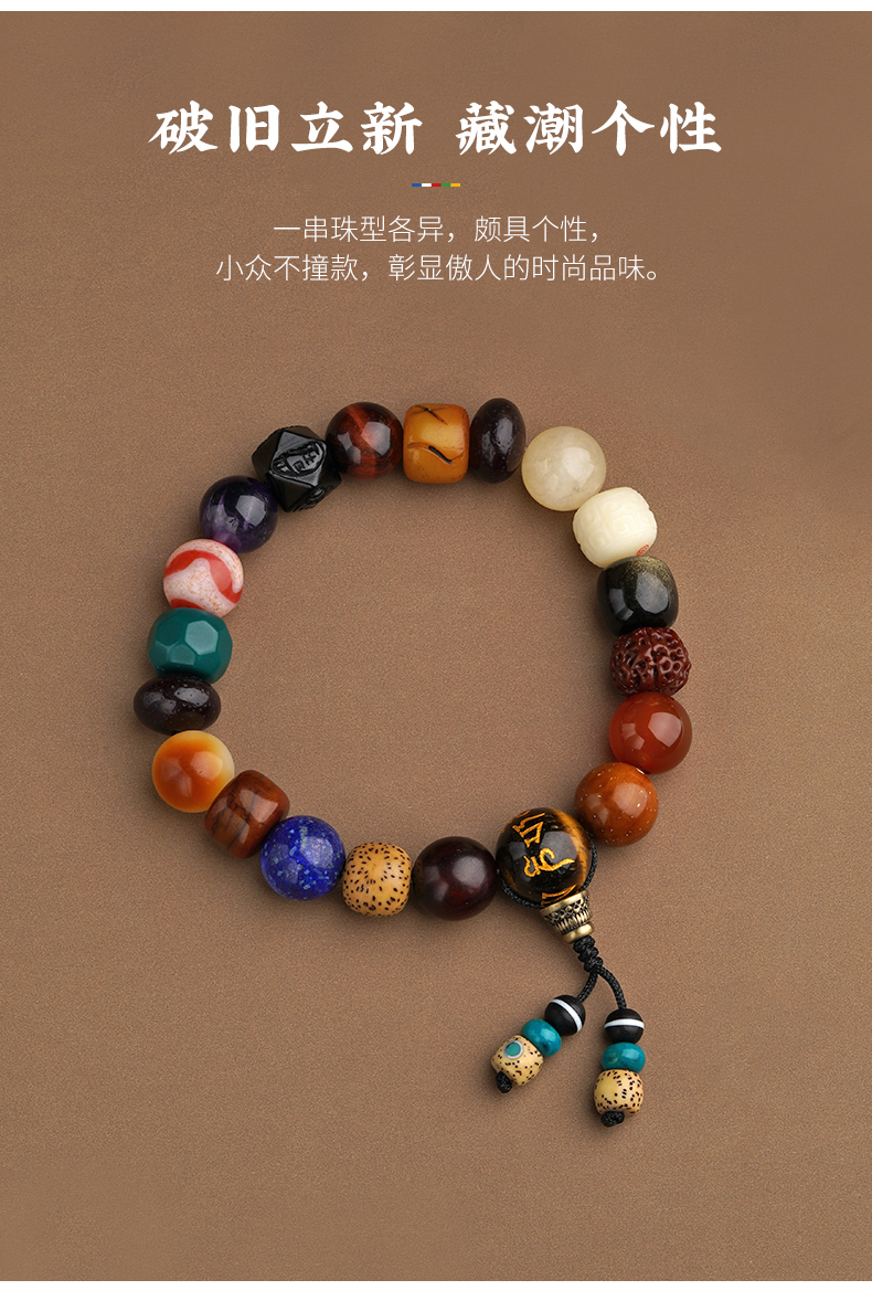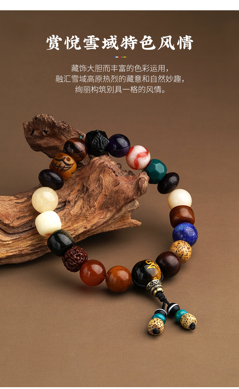 布达拉宫牛骨黑曜石八棱珠十八籽多宝手串男女款手串文玩