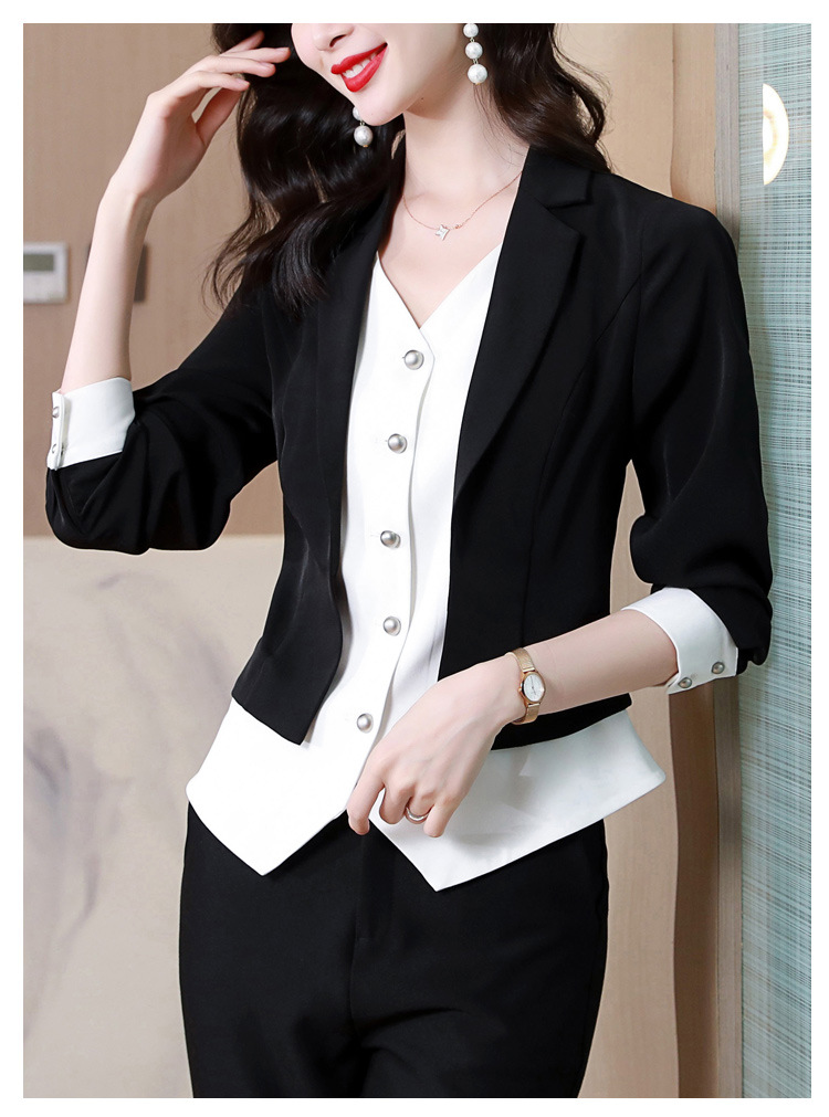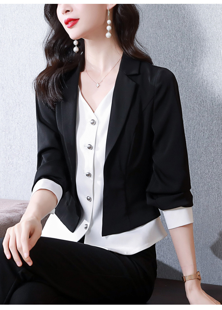 MZSMZ3052 欧洲站2023春装假两件设计感拼接衬衫西装上衣不规则洋气别致