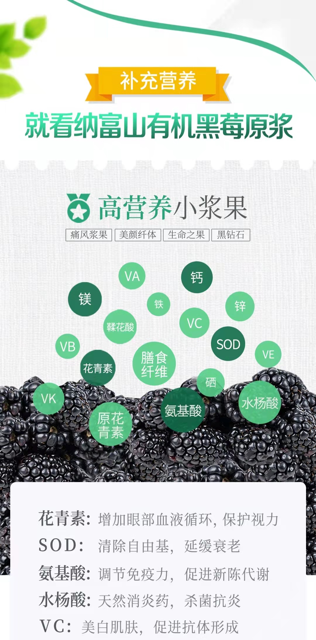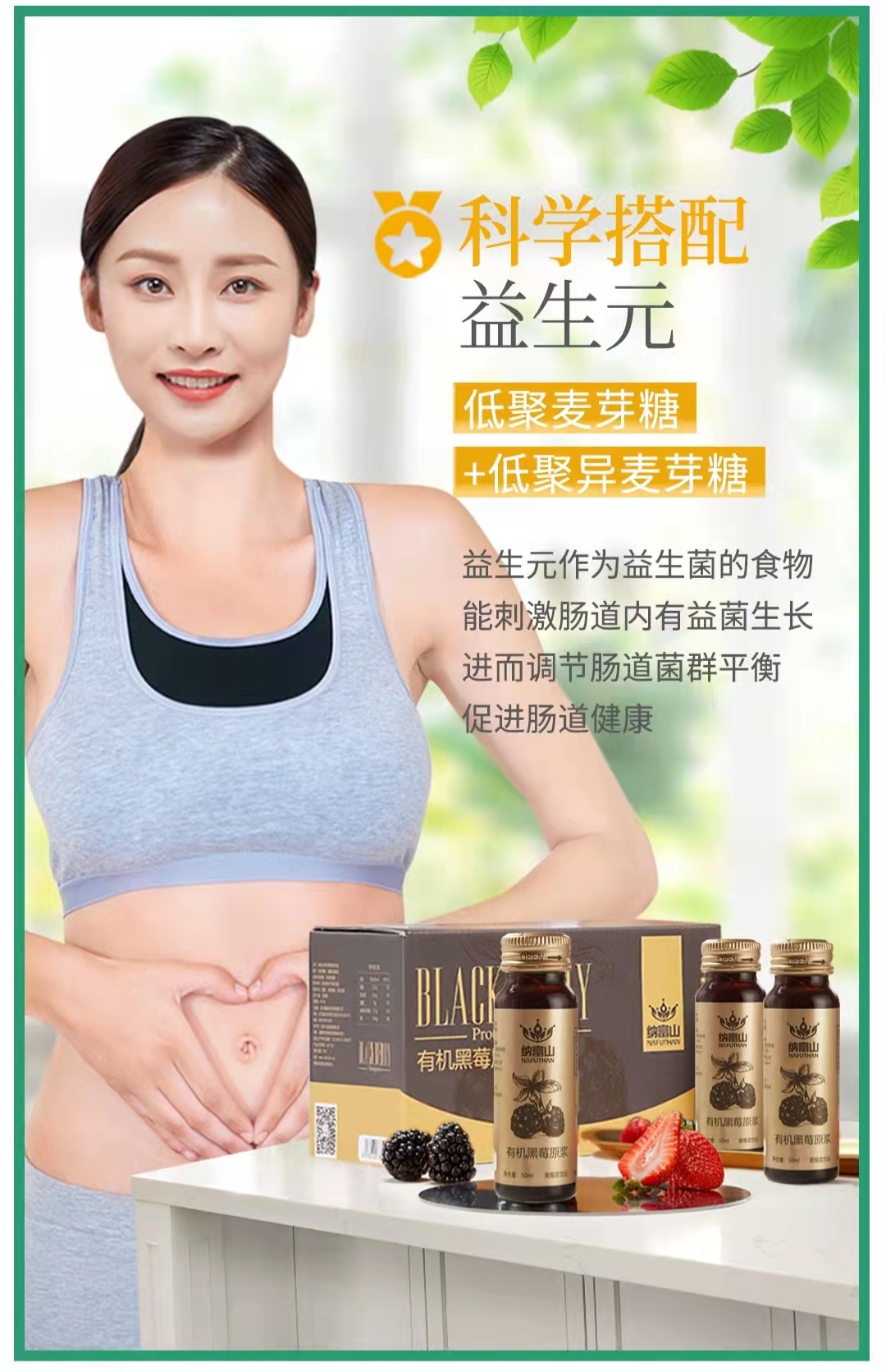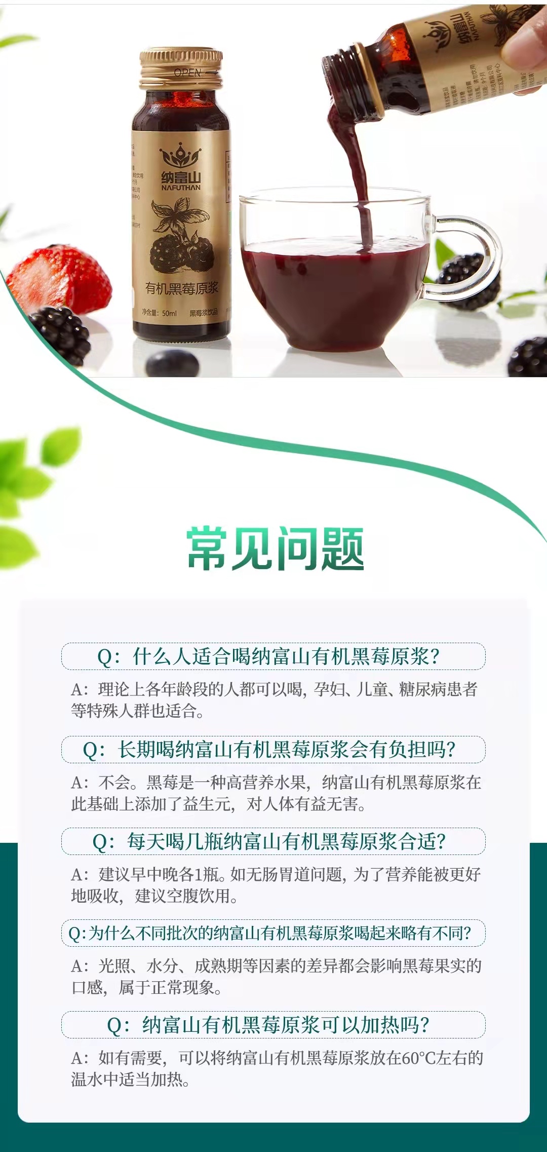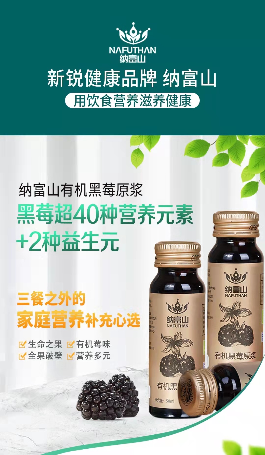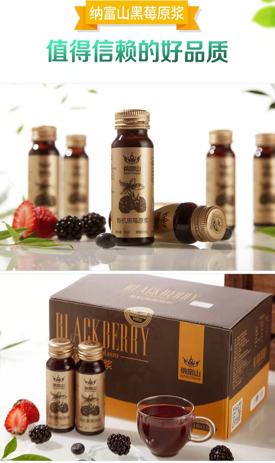 纳富山有机黑莓原浆 花青素绿色健康饮品 50ML*60瓶/箱 四盒装