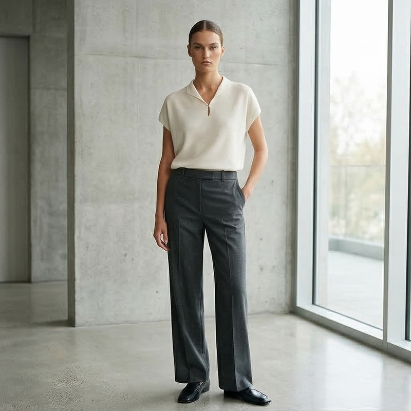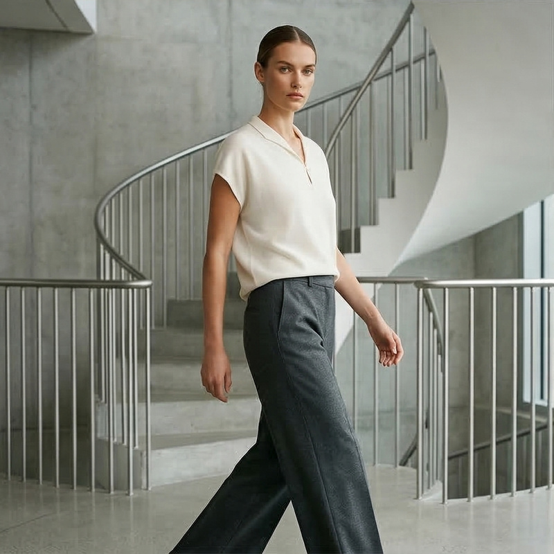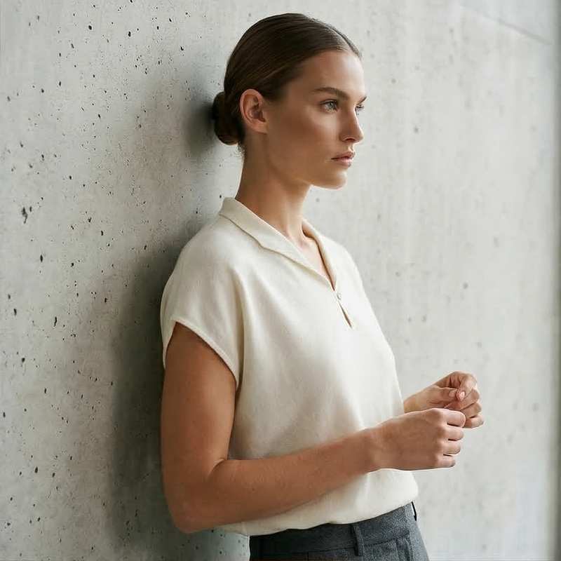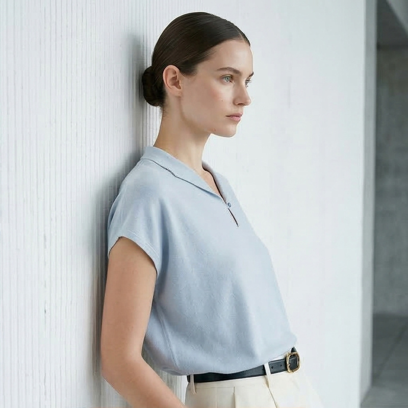 PALUOPO/PL翻领宽松显瘦舒适透气含羊毛针织T恤ES250663M