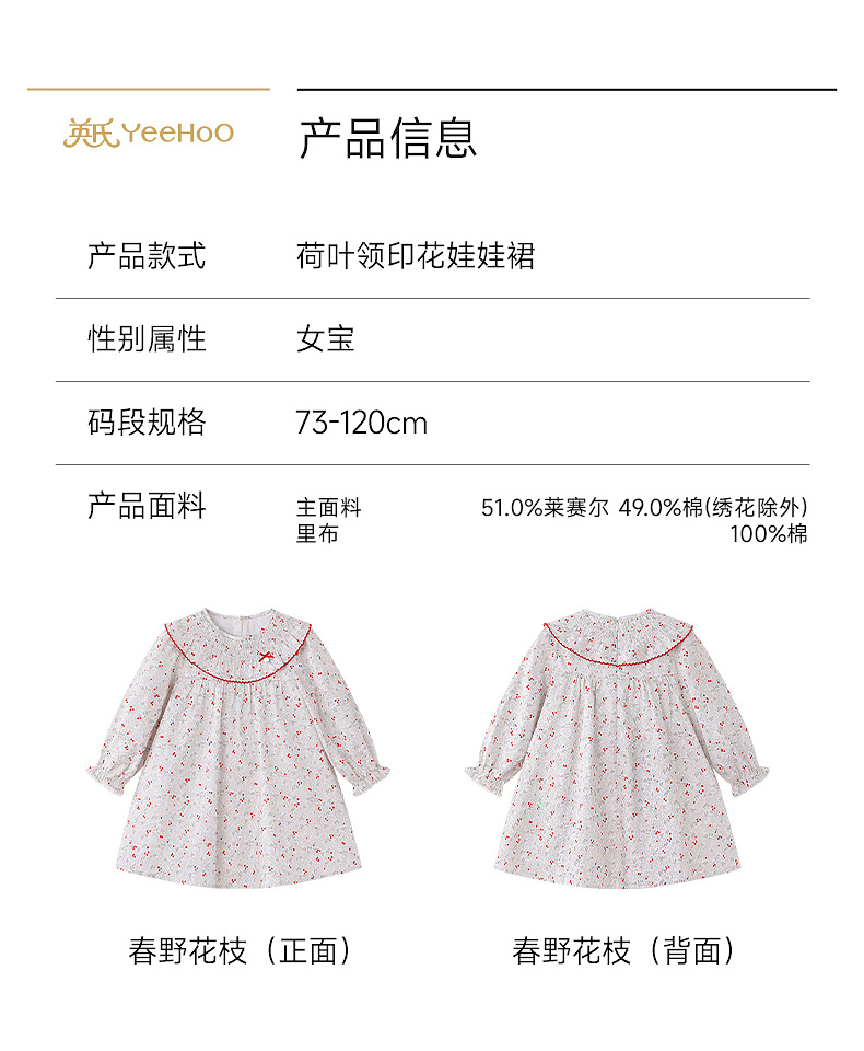 【商场同款】英氏连衣裙女童日常裙子春秋莱赛尔透气长袖裙子新款