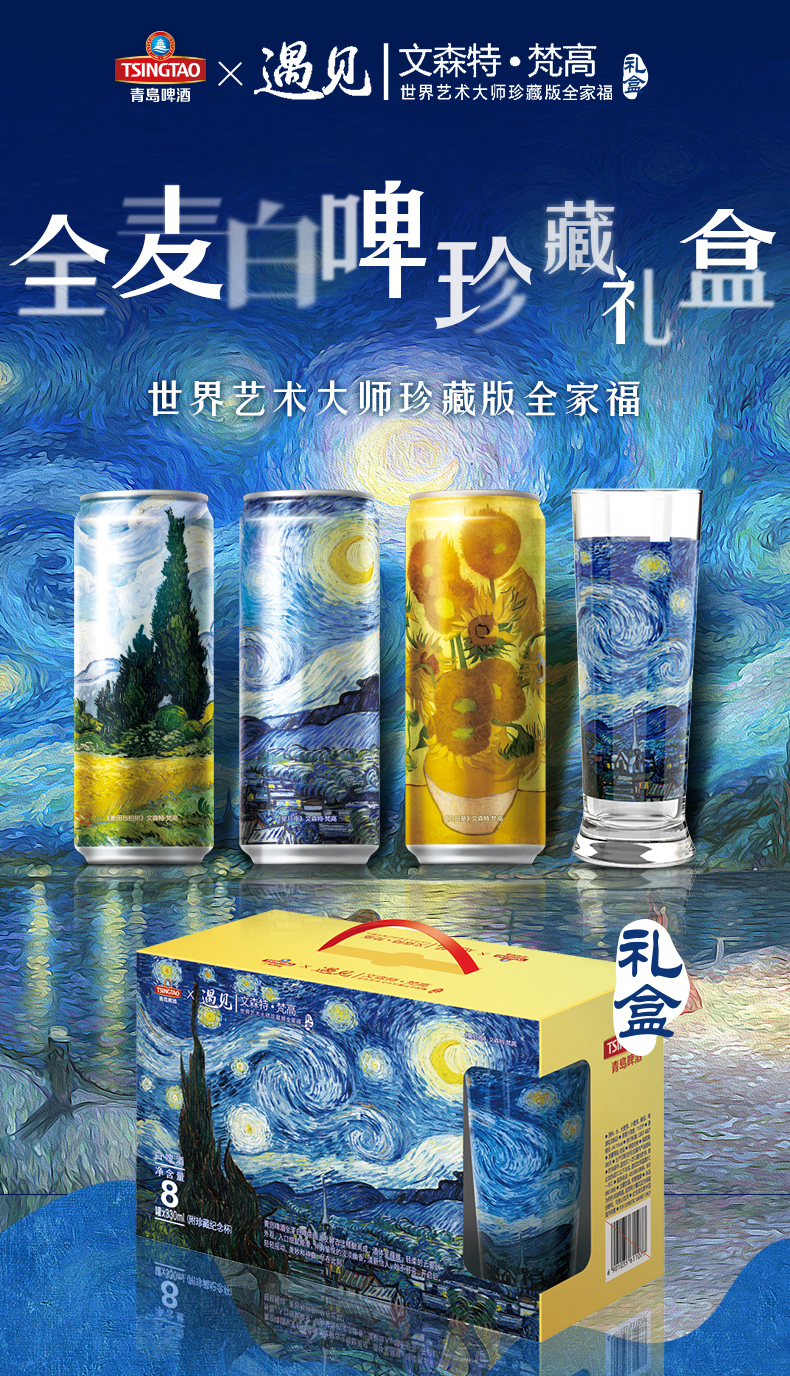 青岛啤酒 梵高礼盒白啤11度330ml*8罐/箱 珍藏版 商品图0