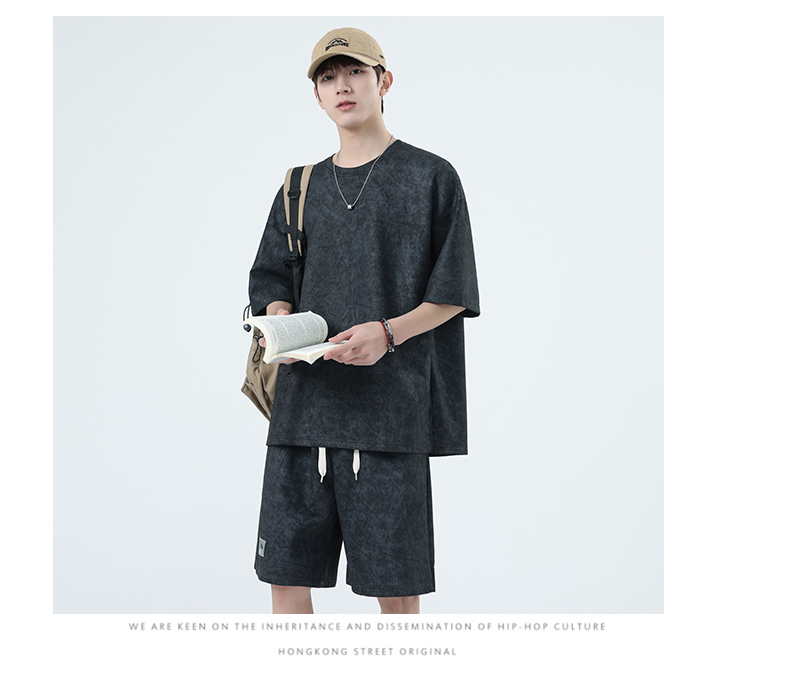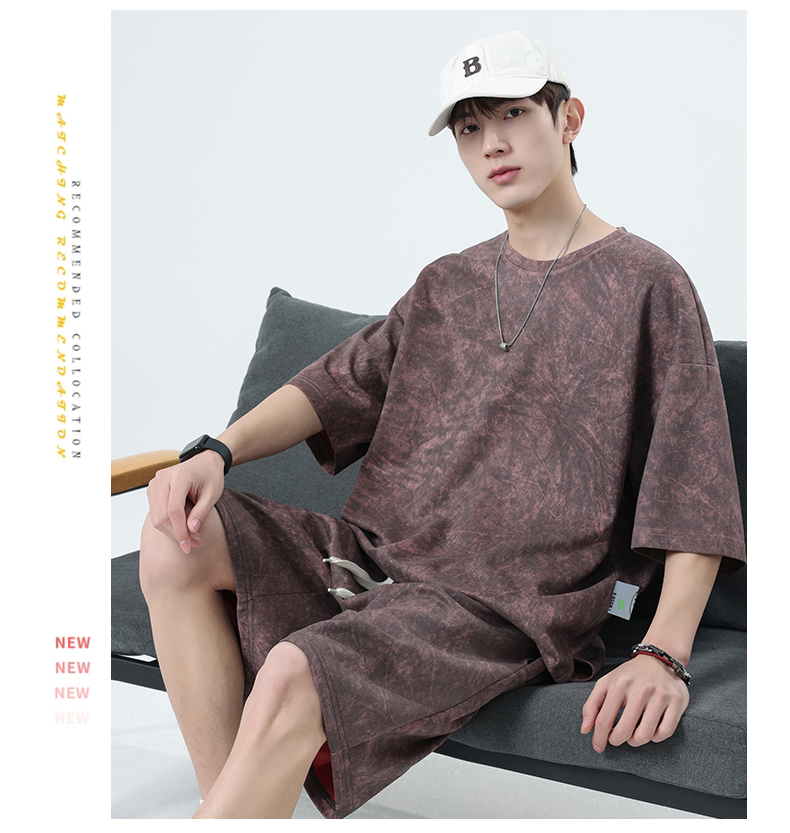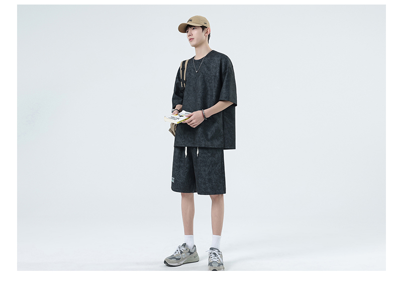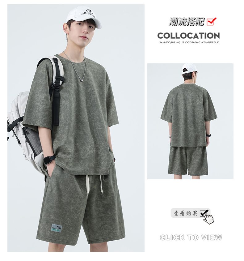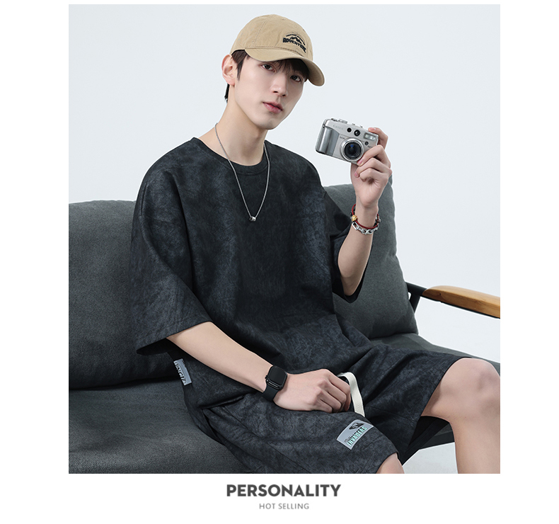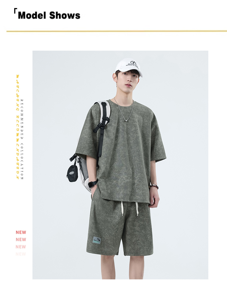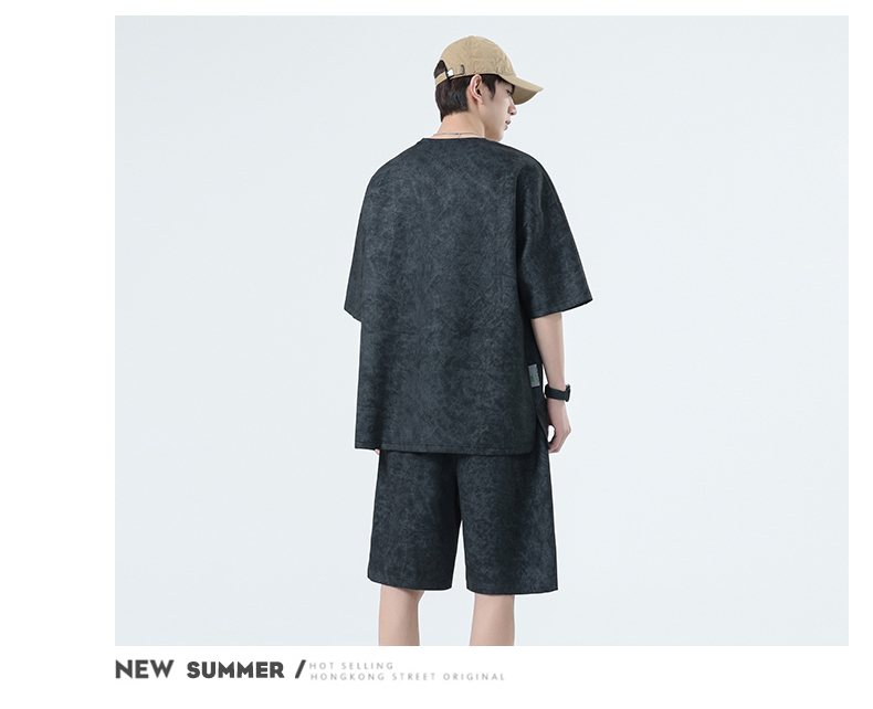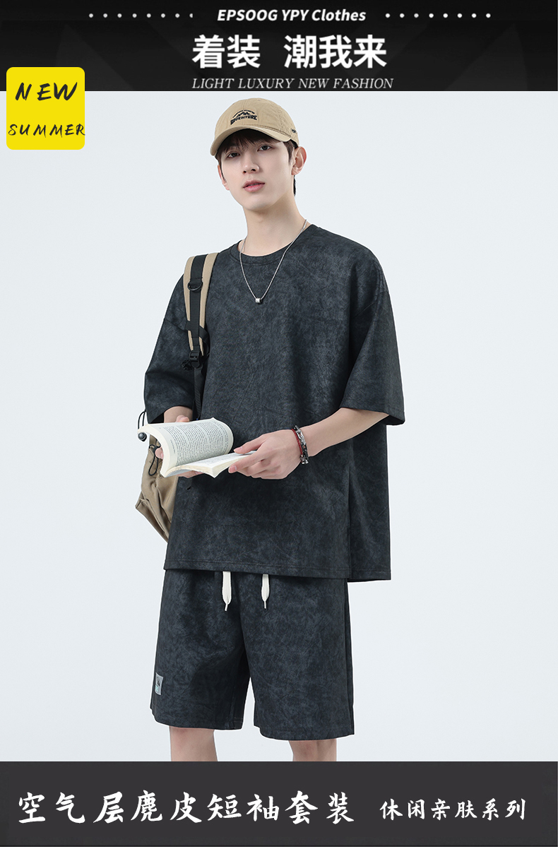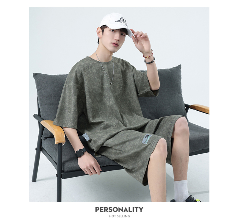 【特大码】【空气层】【DSY】大依优型大码圆领短袖T恤短裤套装夏季加肥加大肥佬休闲宽松透气上衣男士半袖夏装300斤