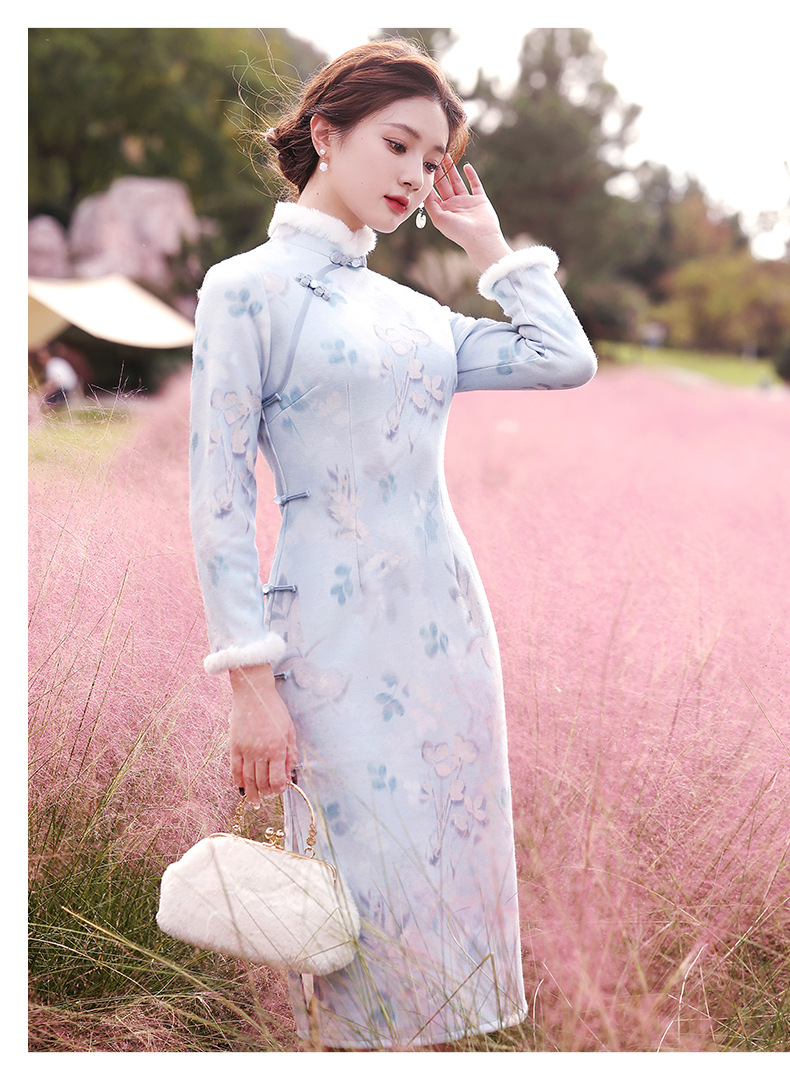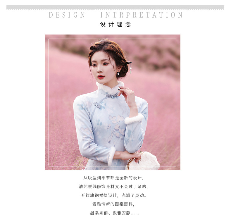 曼丽绒长款温婉少女,毛茸茸日常文艺风气质旗袍MLS-6821