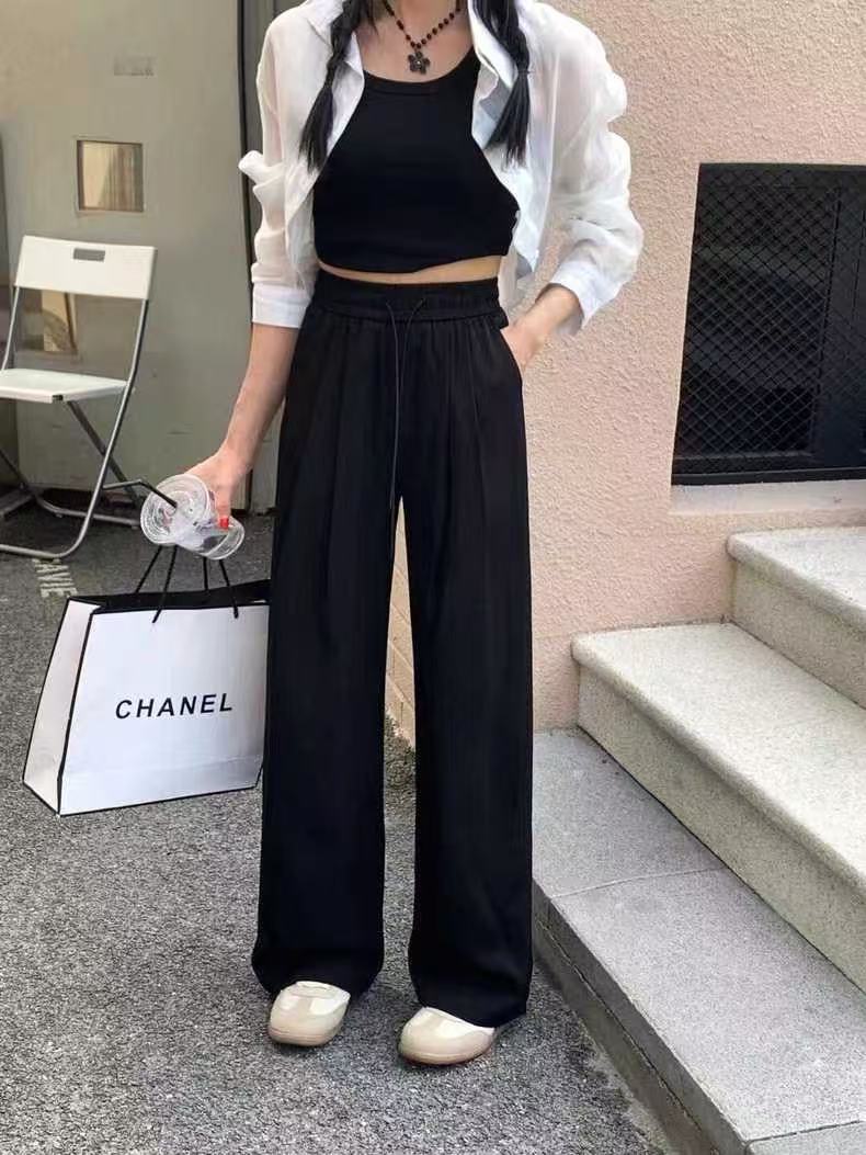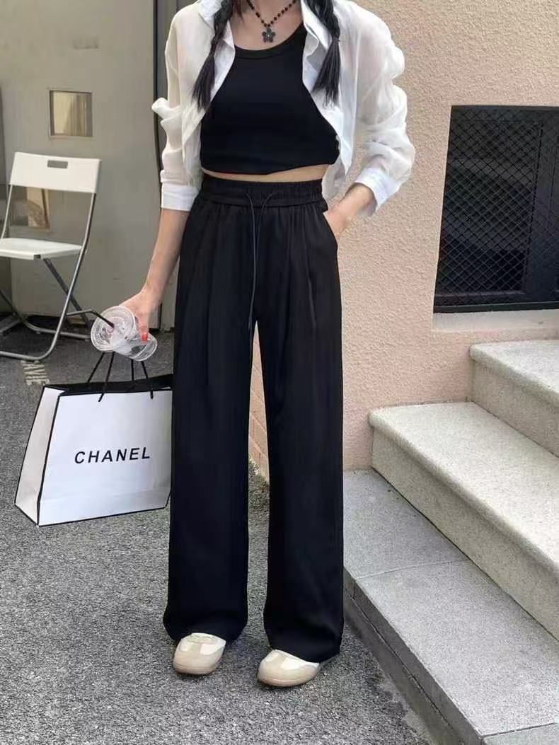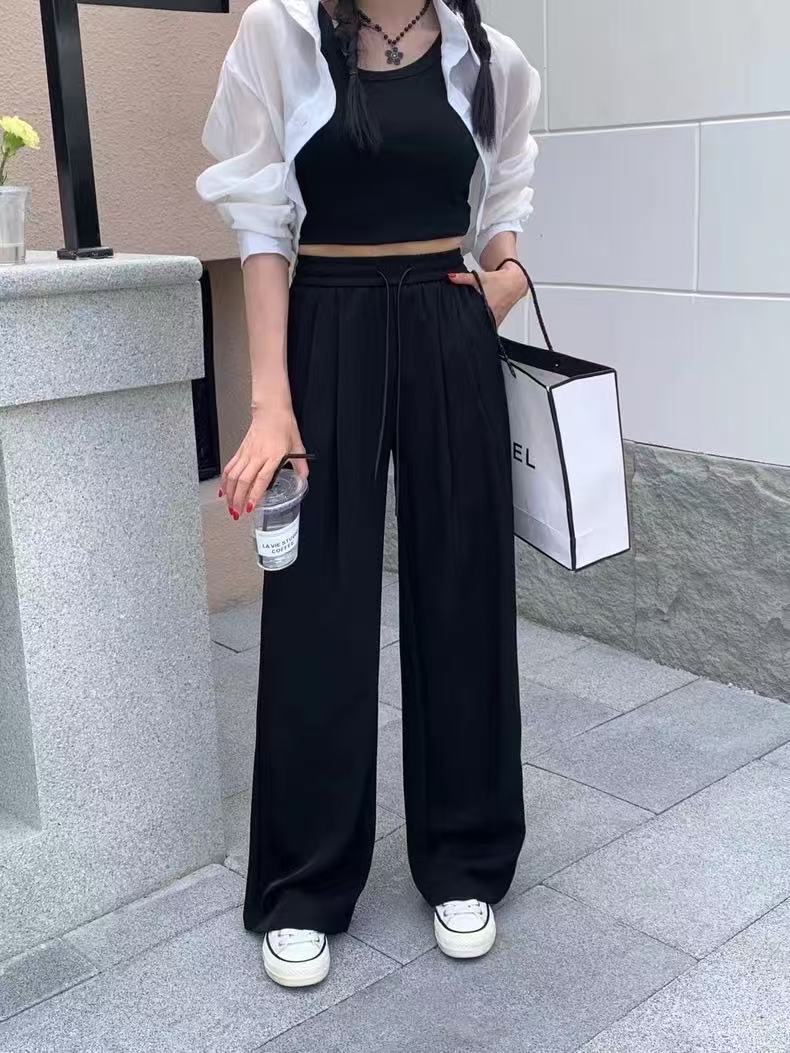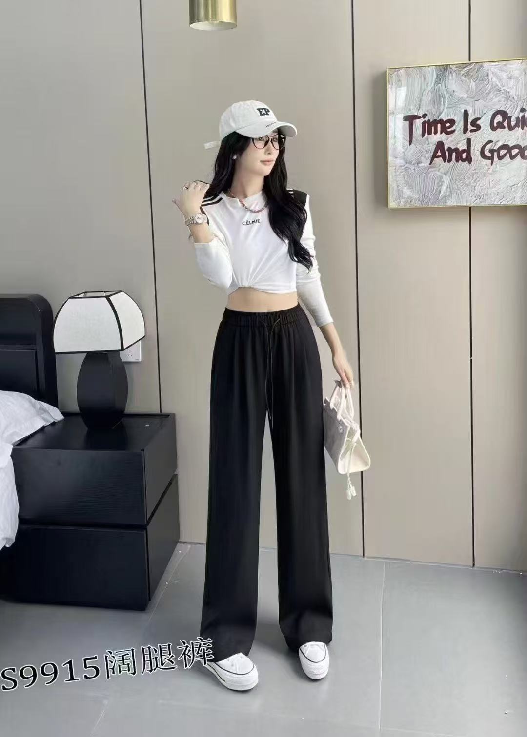 8.12秒杀清仓 S9915新款韩版高腰显瘦百搭垂坠感拖地长裤-喜出