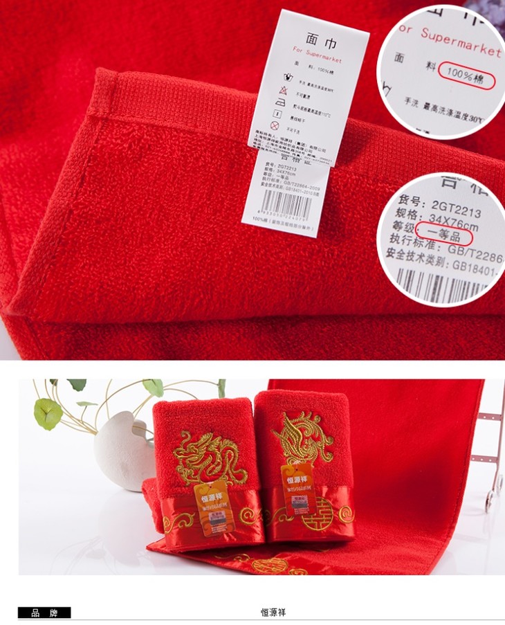 恒源祥龙凤喜庆套巾2GT2213 2GY2132(红色)