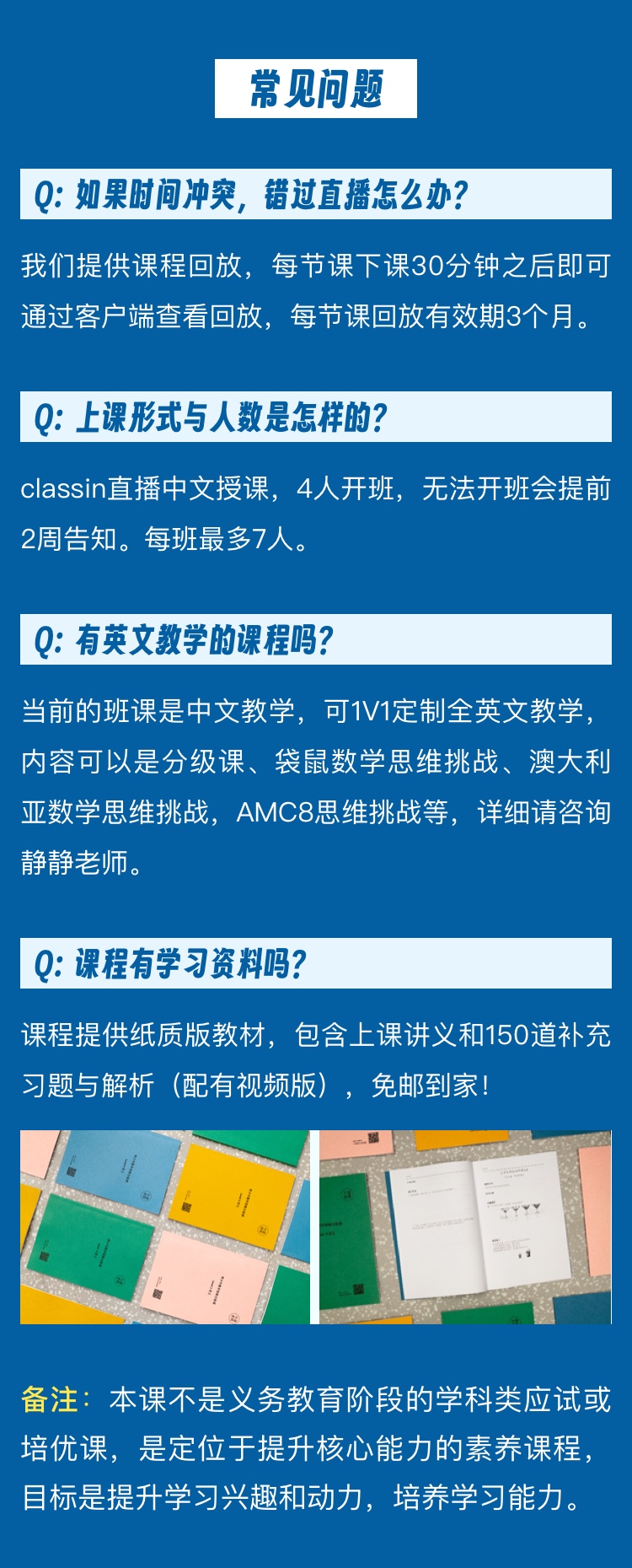 备注:本课程不是义务教育阶段的学科类应试或培优课程,该学术挑战活动不与任何中国的大学、中学或小学加分活动挂钩,课程仅定位于核心能力和学习兴趣的培养。