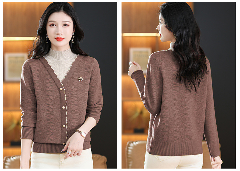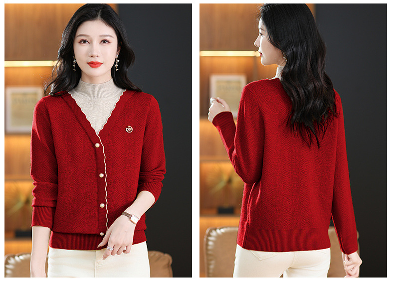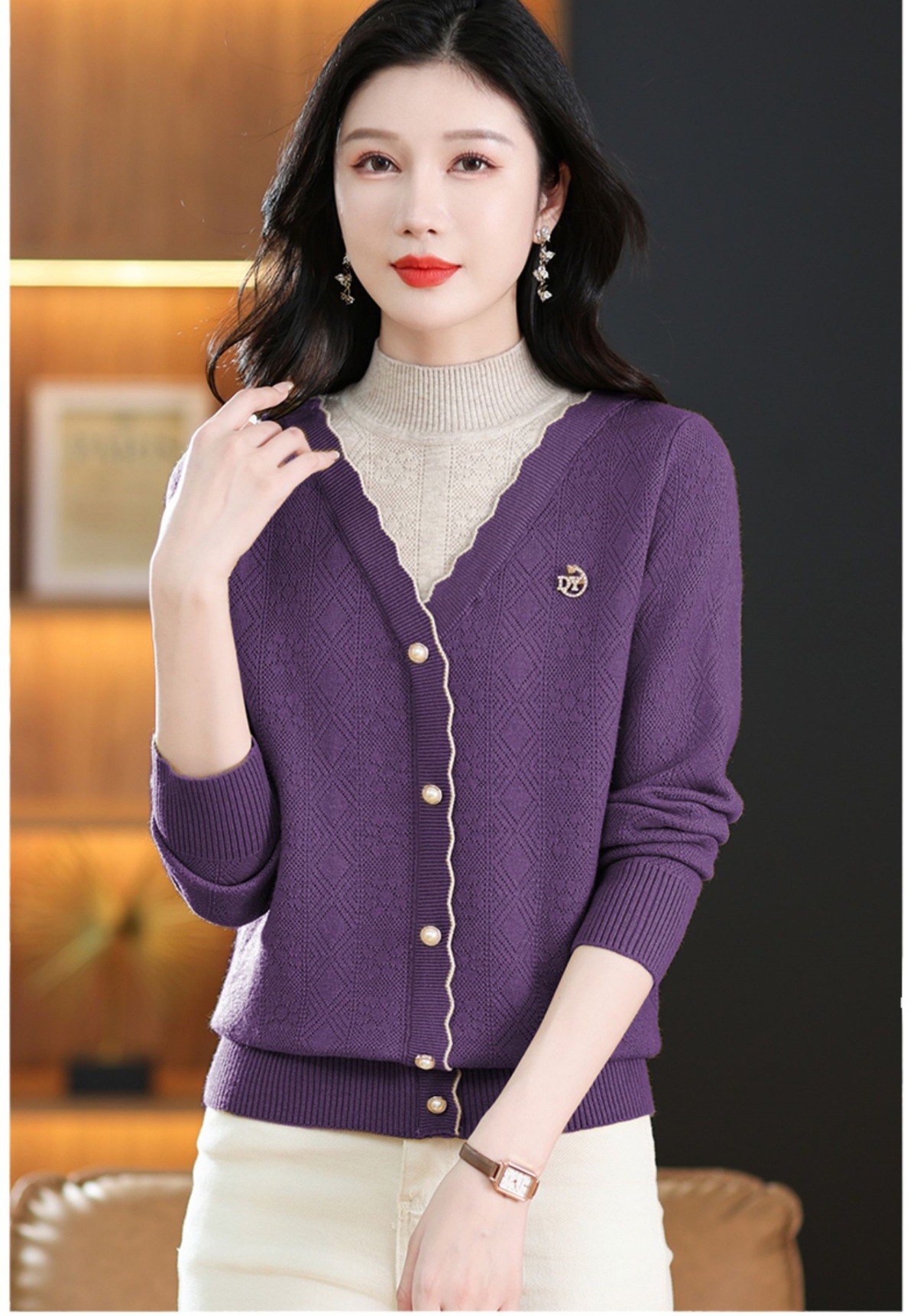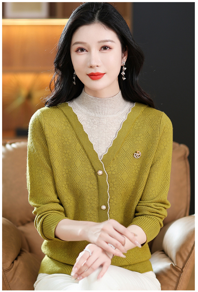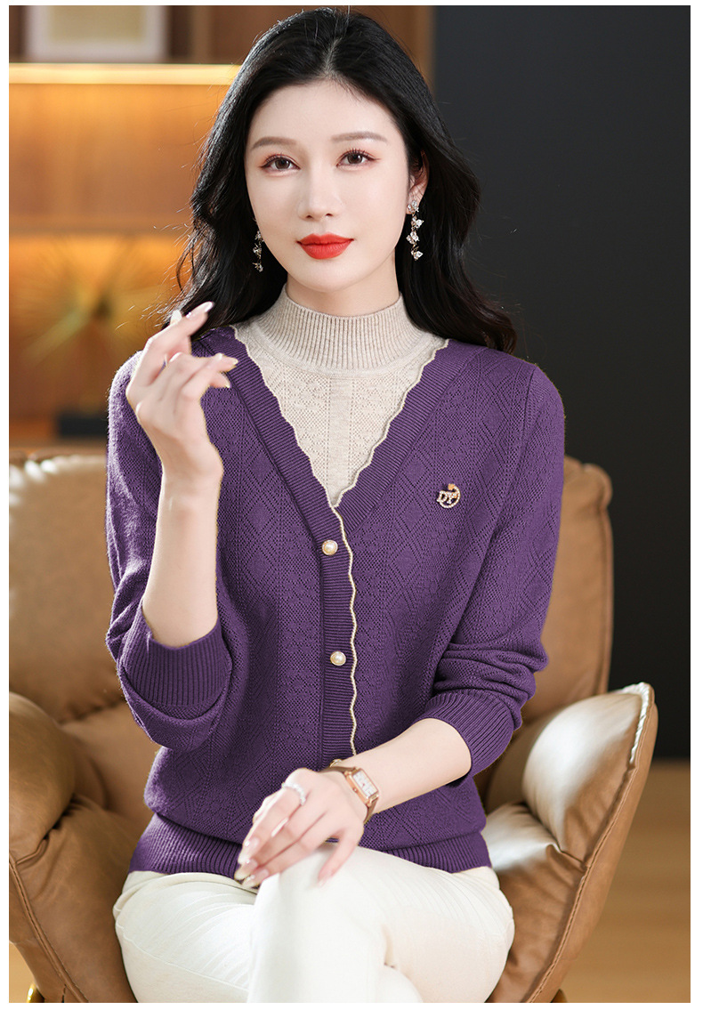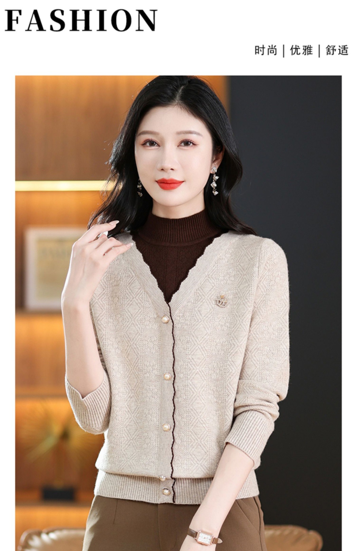 CC-WXN-BSM517半高领假两件时尚毛衣女秋冬宽松针织上衣妈妈内搭韩版时髦打底衫