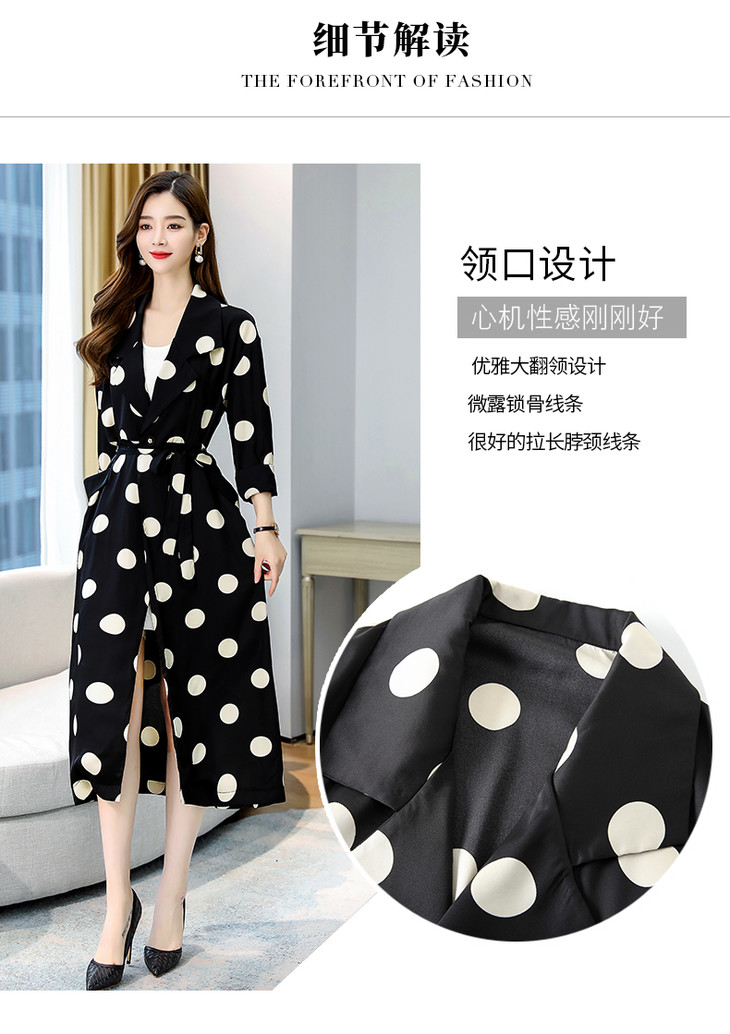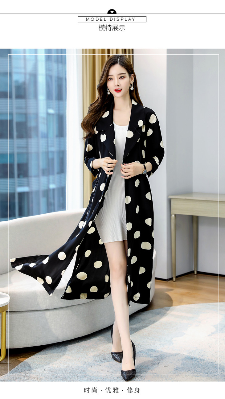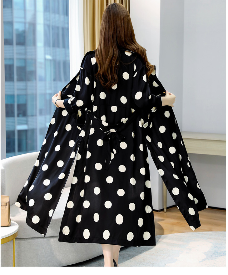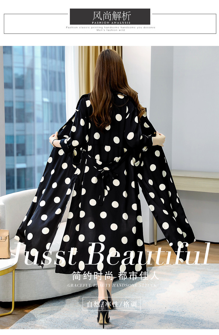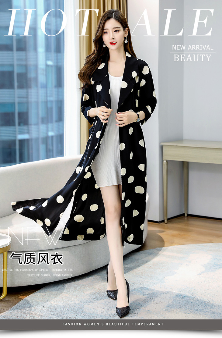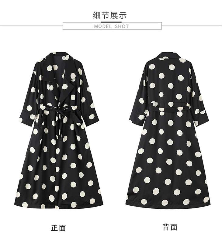 HRFS-HAYR7515新款时尚气质休闲宽松翻领长袖中长款波点风衣外套