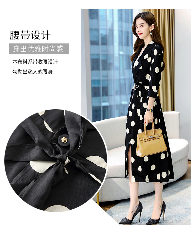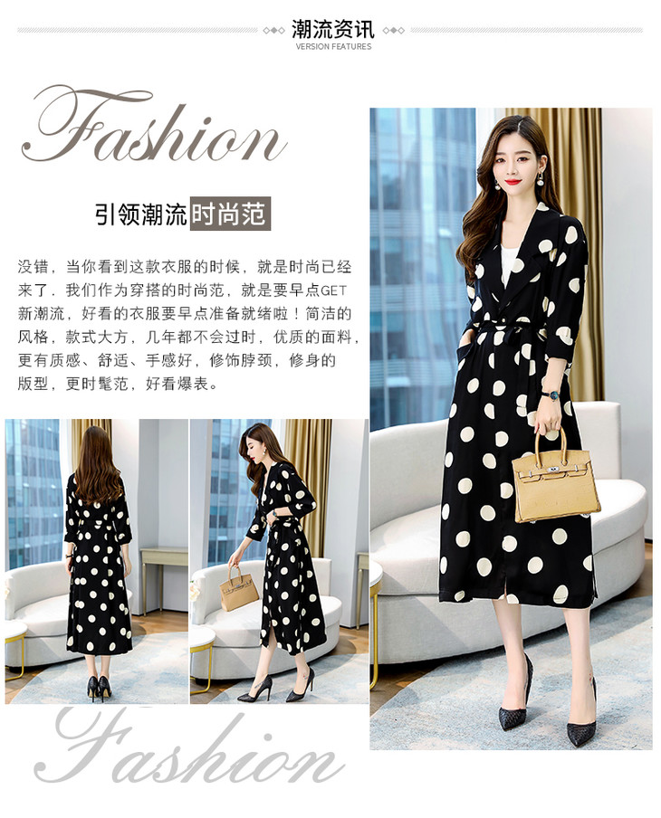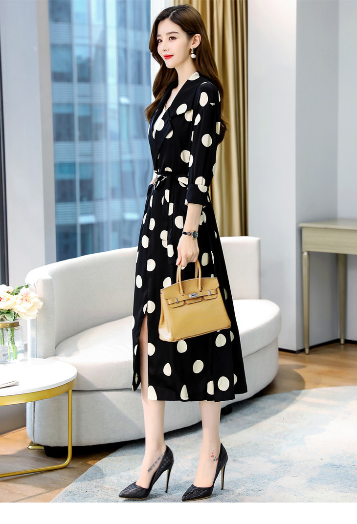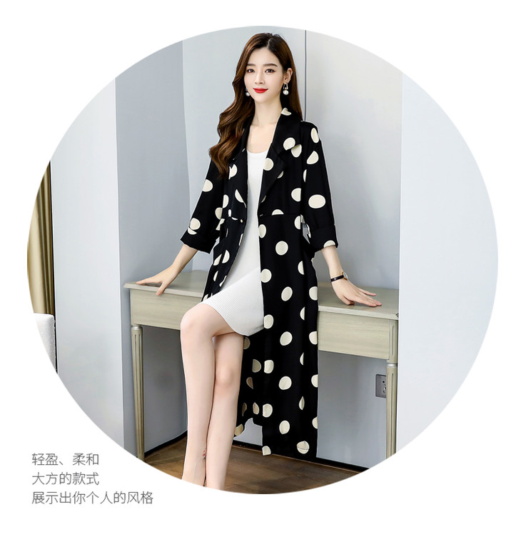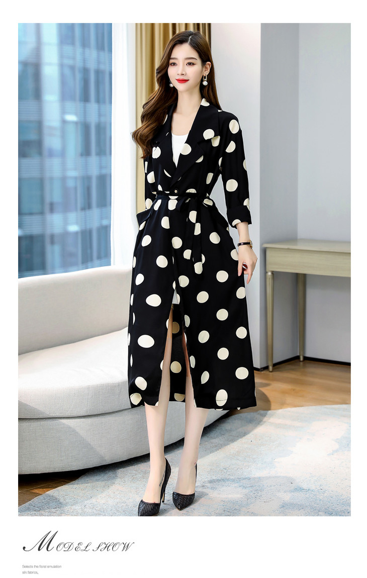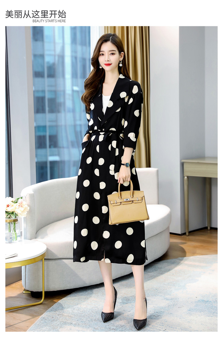 HRFS-HAYR7515新款时尚气质休闲宽松翻领长袖中长款波点风衣外套