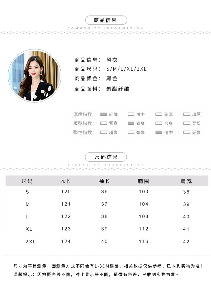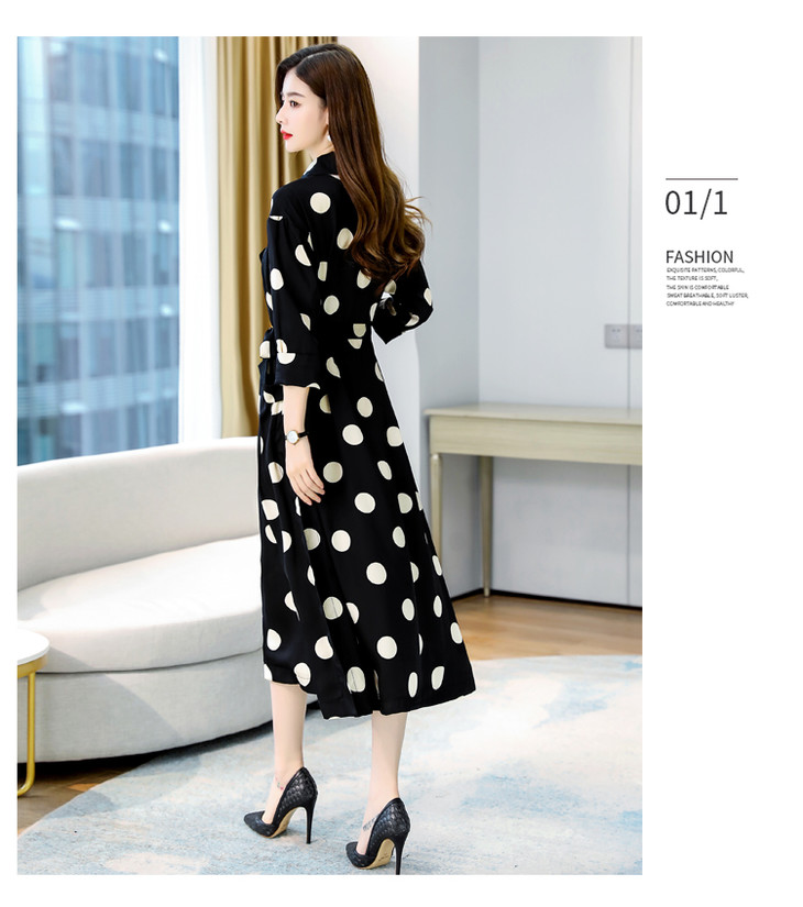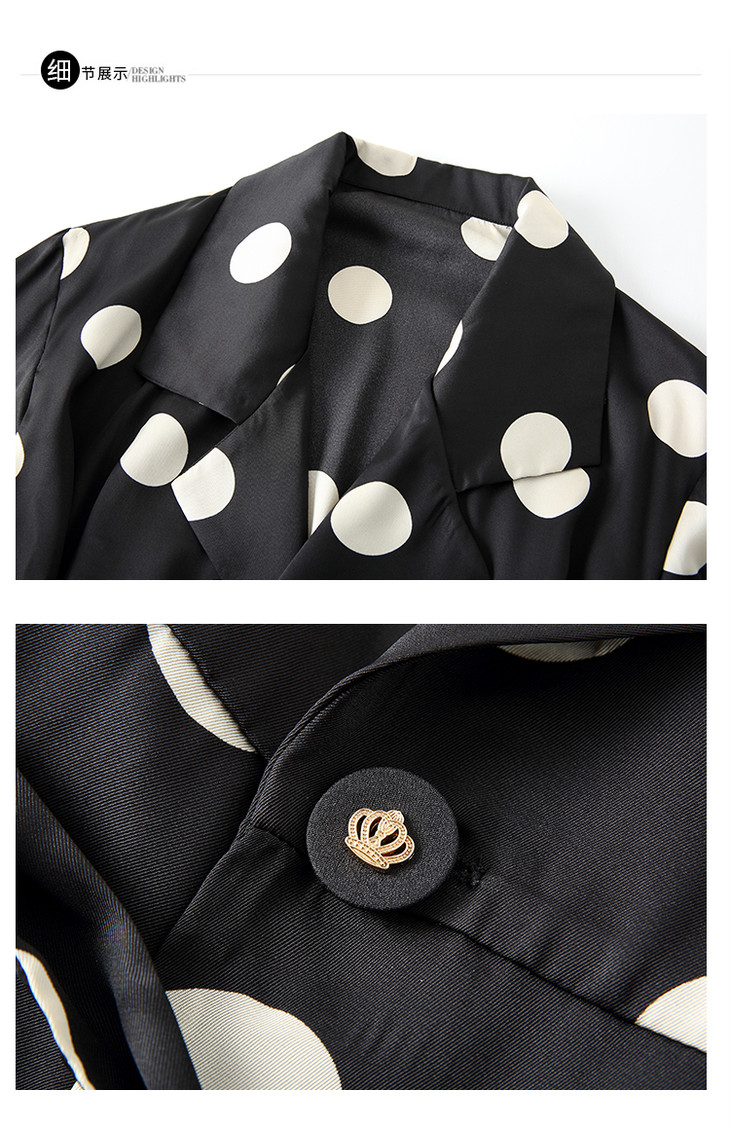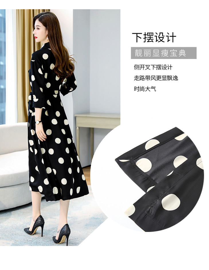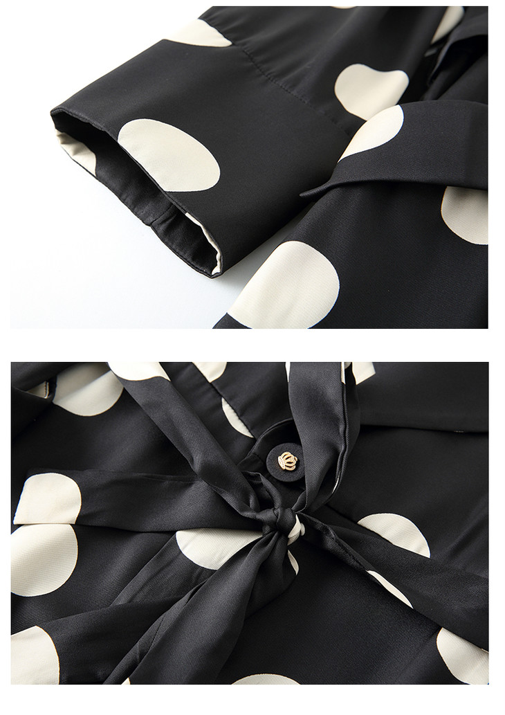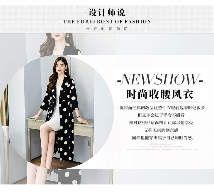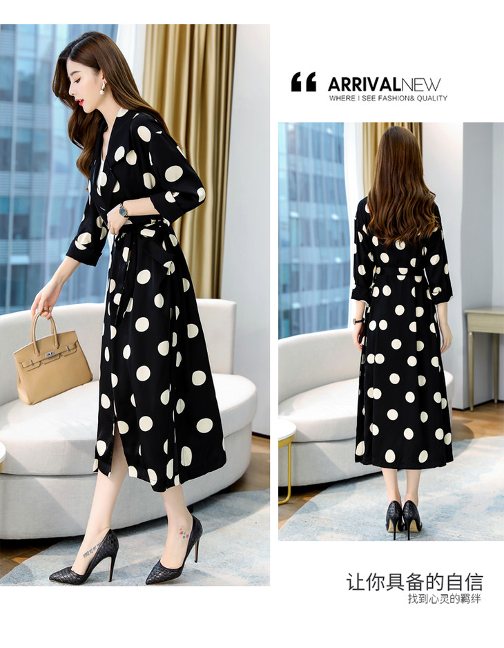 HRFS-HAYR7515新款时尚气质休闲宽松翻领长袖中长款波点风衣外套