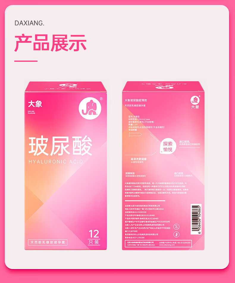 【年末亏本清仓】大象玻尿酸超薄避孕套安全套 8只装