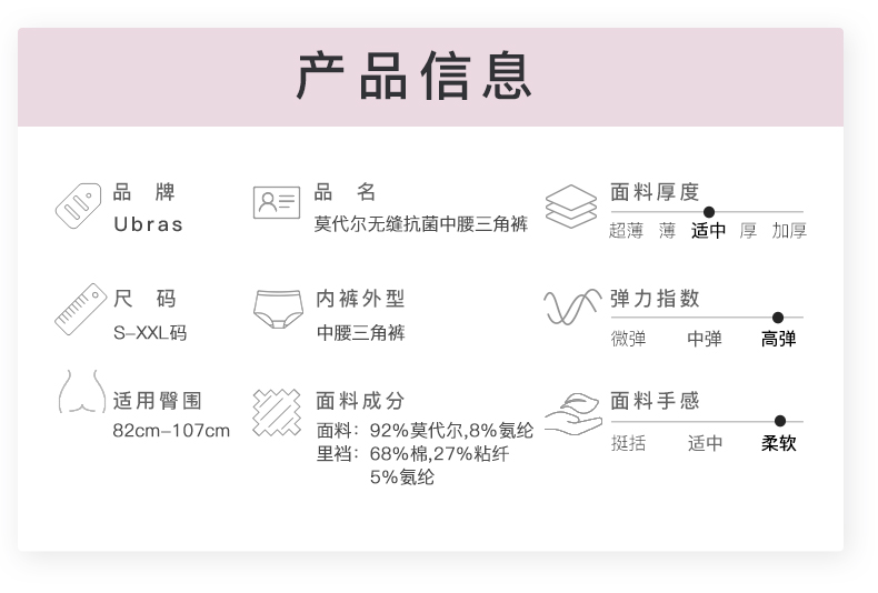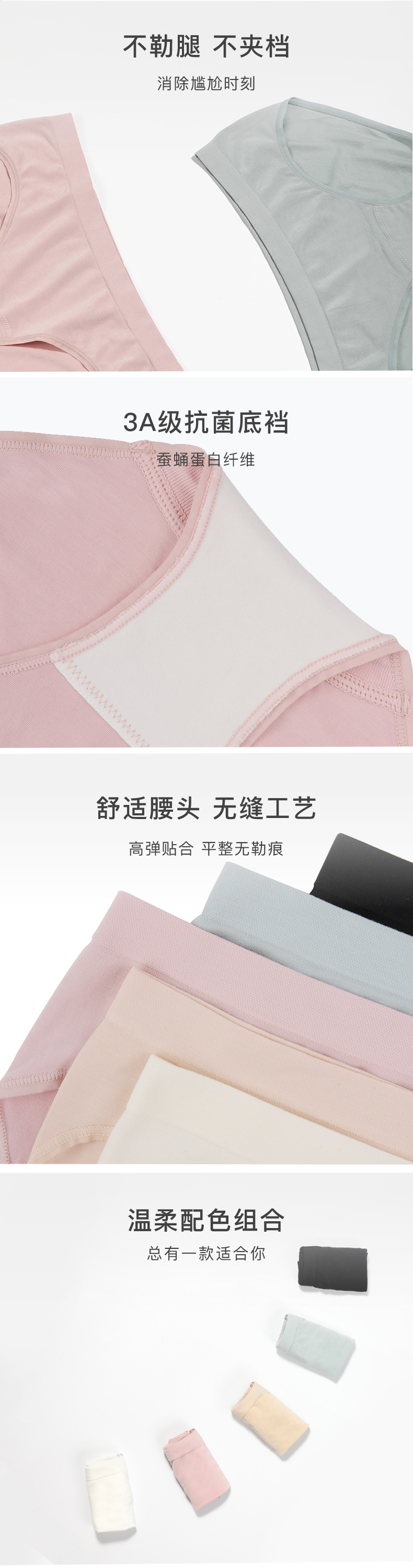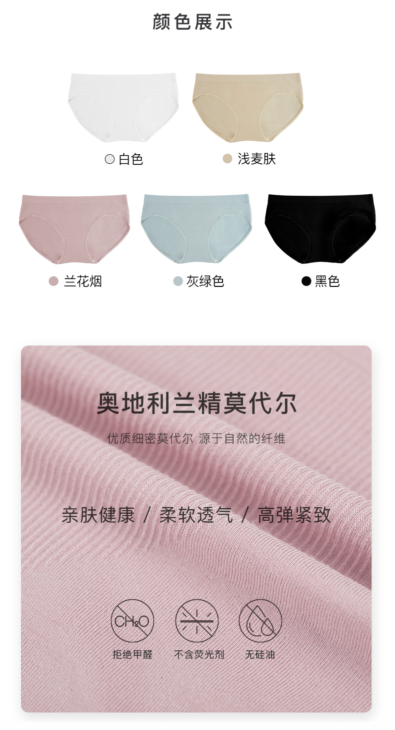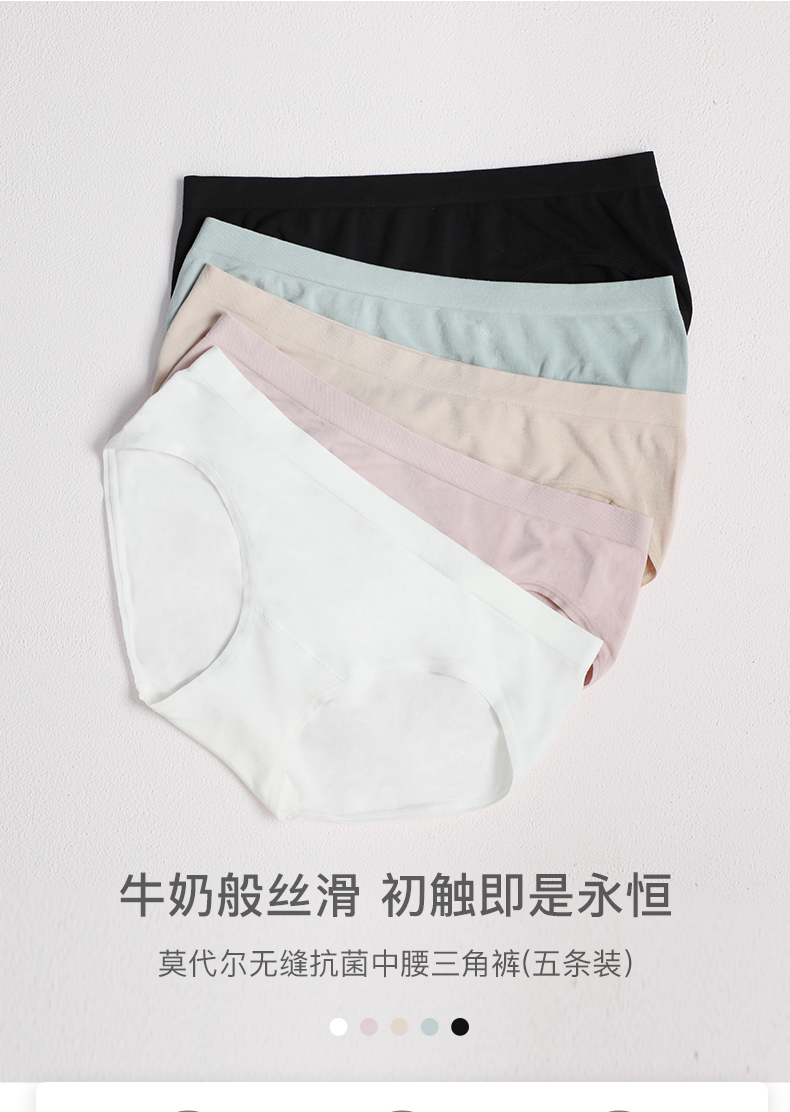 Ubras莫代尔无缝中腰三角裤(5条装)内裤 女舒适无痕透气女士内裤