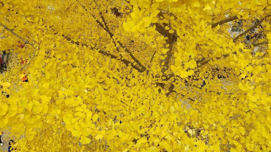 金灿灿的银杏铺满了整条道路