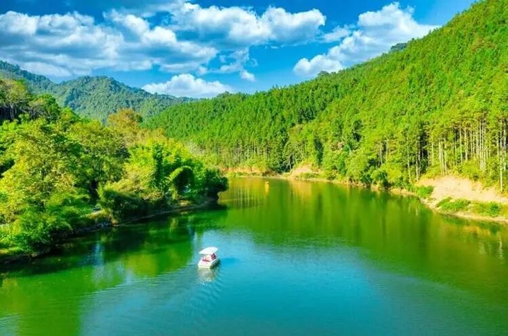 河在山中卧,船在画间行……帽子峰游船码头位于岭南小九寨景点旁,坐上游船,置身凌江河中,一览凌江两岸秀丽迷人景色。追逐绝美的日落夕阳,红枫、银杏、粼波交相辉映,绿树掩映、宛若一幅秀丽的风景画卷徐徐展开,船走景移,游览的心境也融于其中,随之心动。