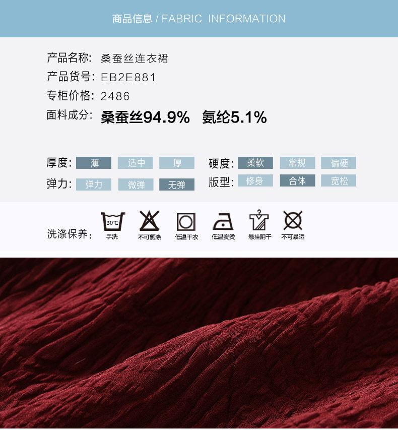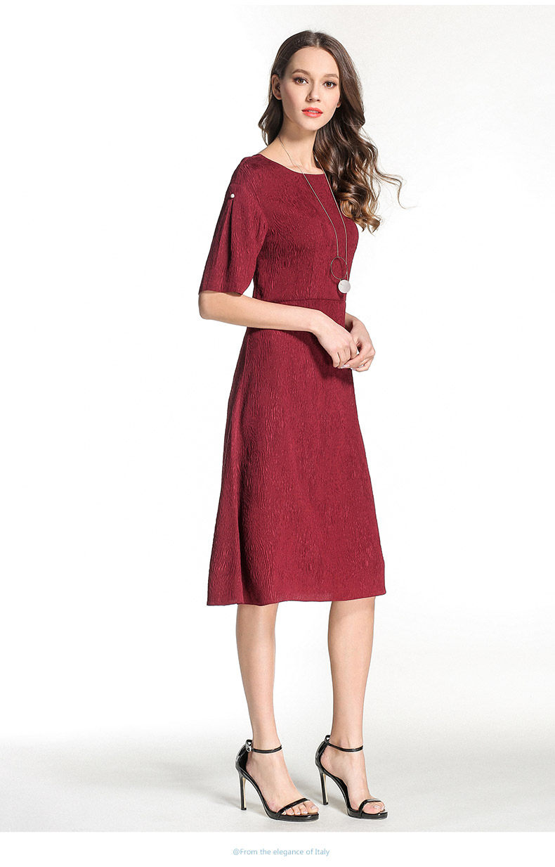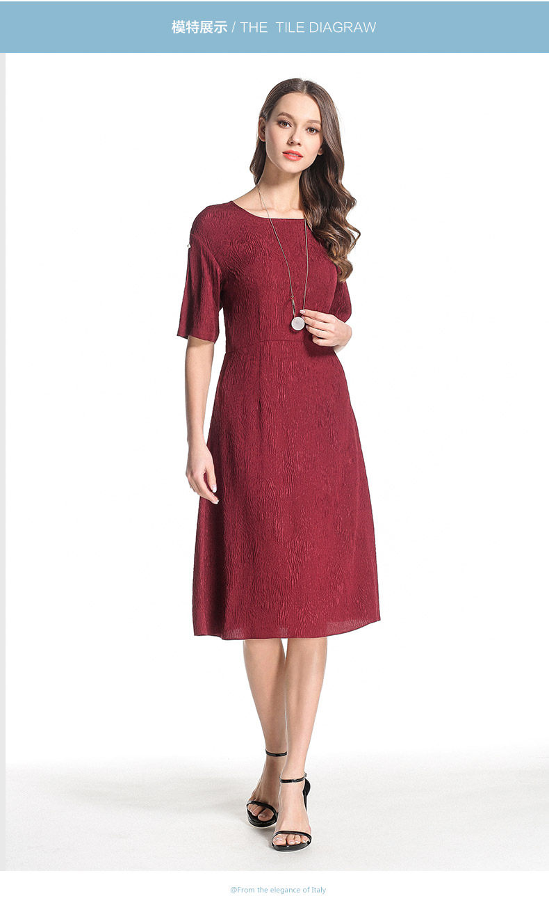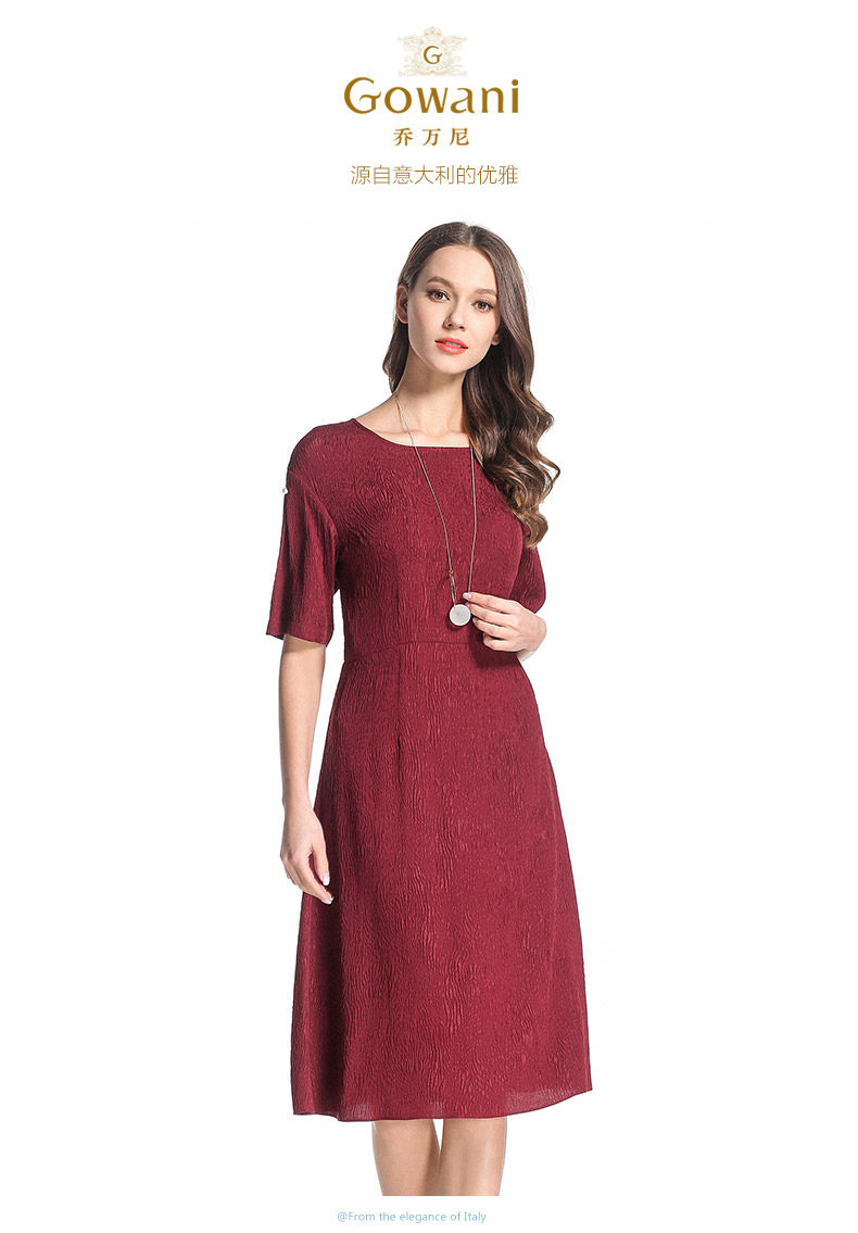 乔万尼夏季连衣裙桑蚕丝气质真丝高腰红色a字裙中长款EB2E881