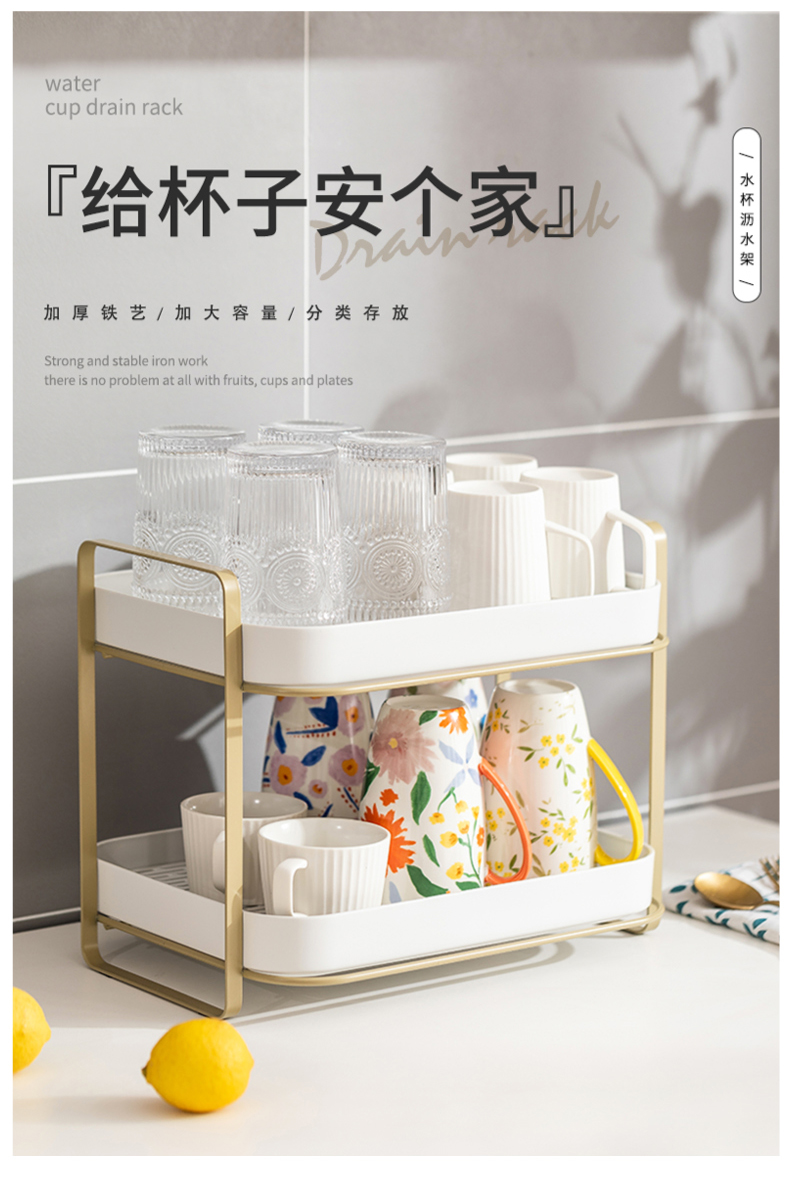 摩登主妇杯架放水杯茶杯整理架子沥水双层防尘托盘杯子收纳置物架