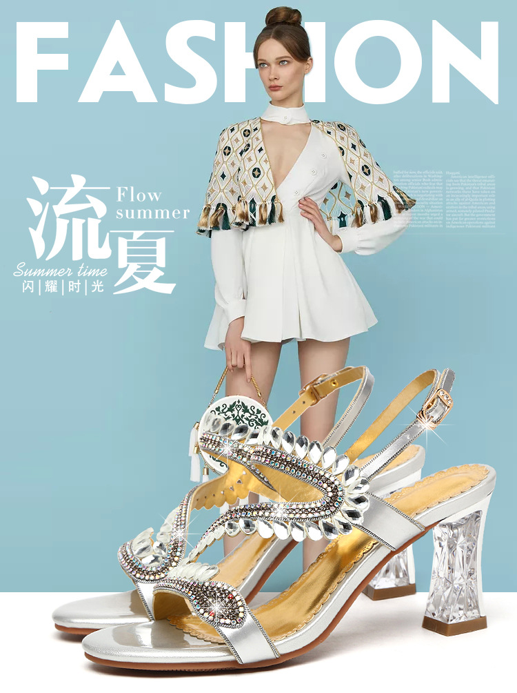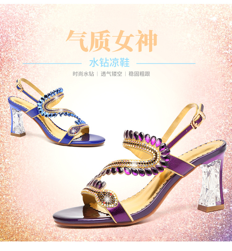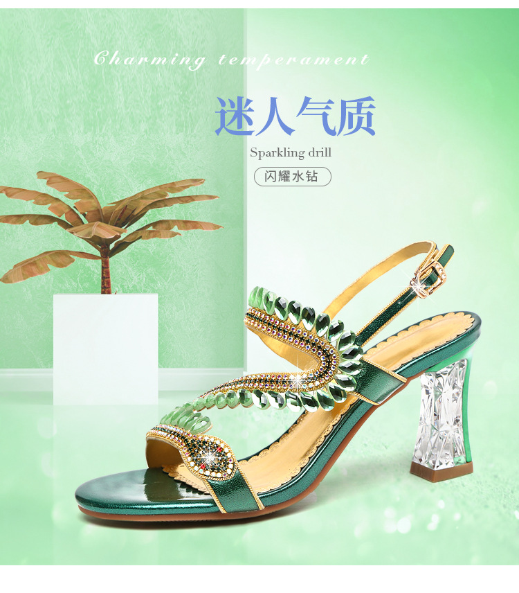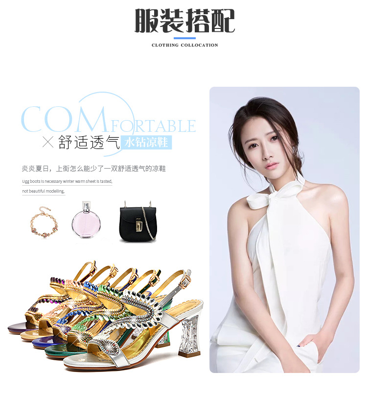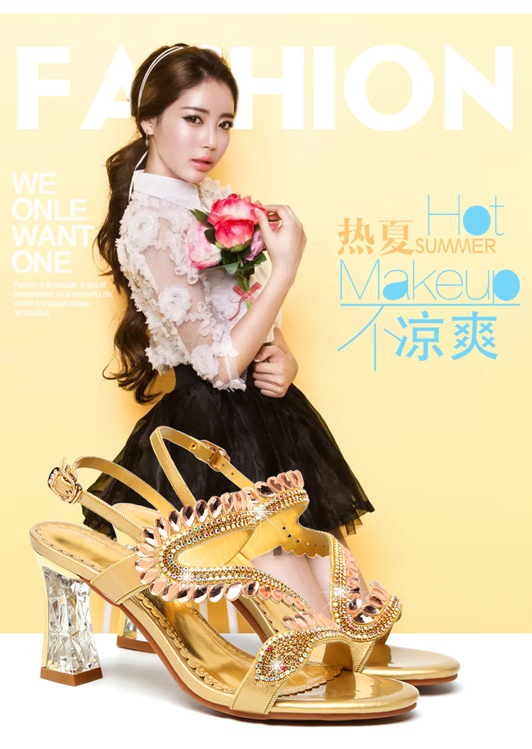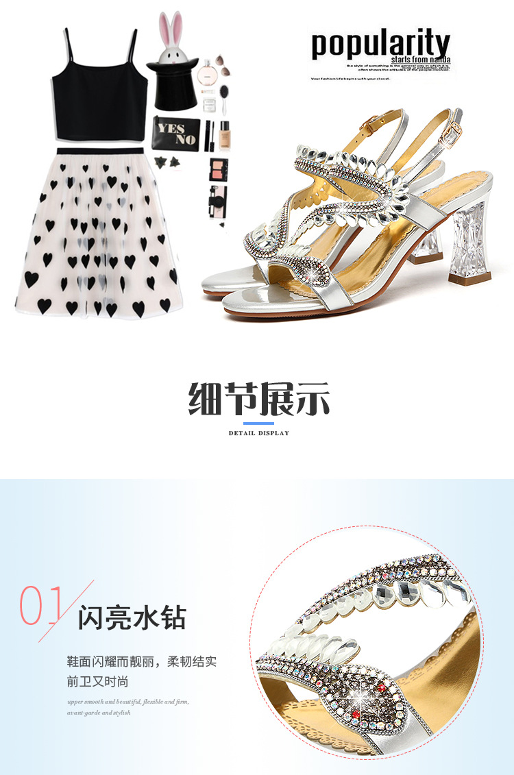 QZM-020356688夏新款韩版外穿百搭高跟时尚镶钻女式凉鞋