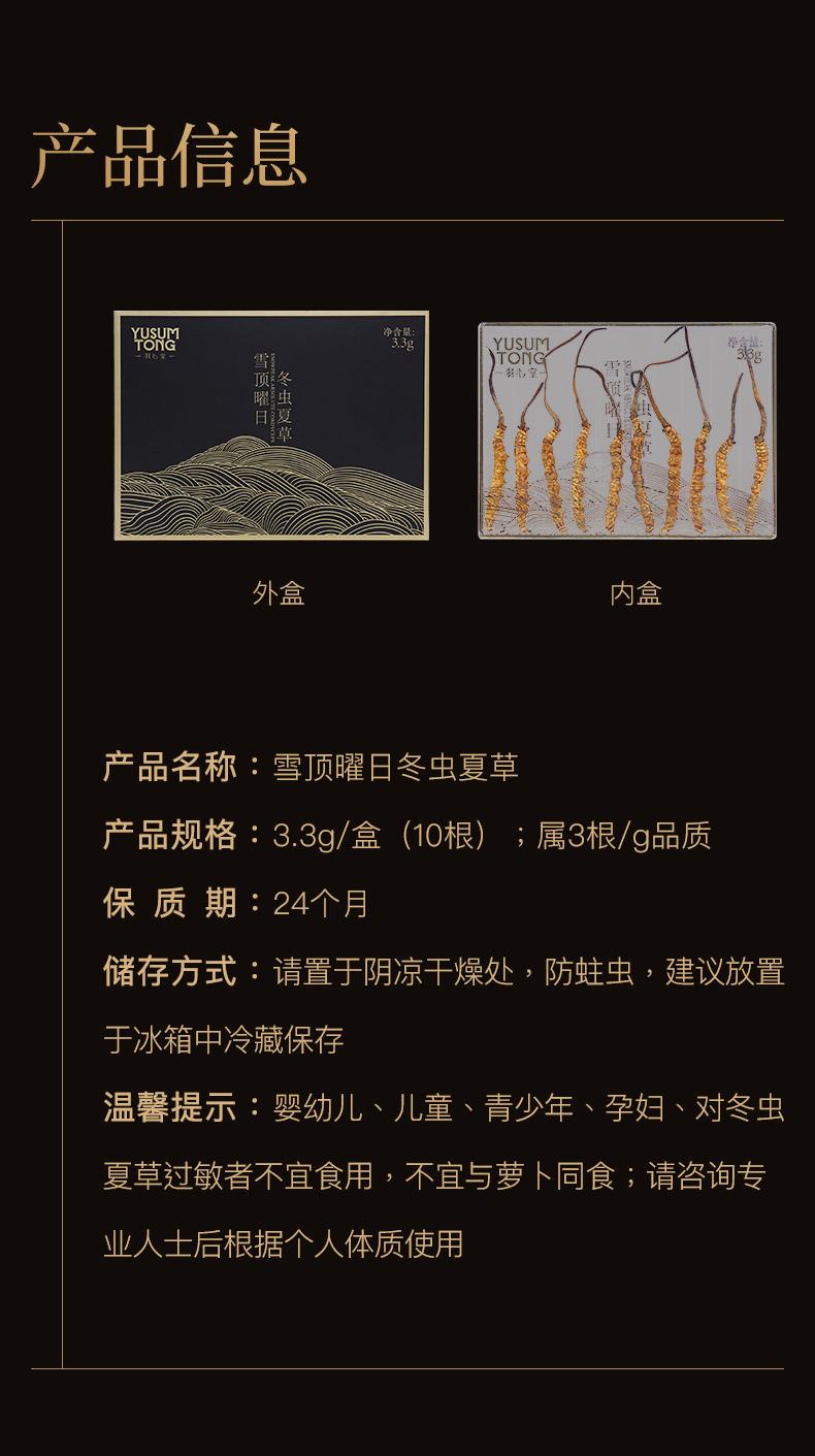 【大眼睛-2月】羽心堂 雪顶曜日冬虫夏草 10根特级 虫草 孕妇不可用 国内发货
