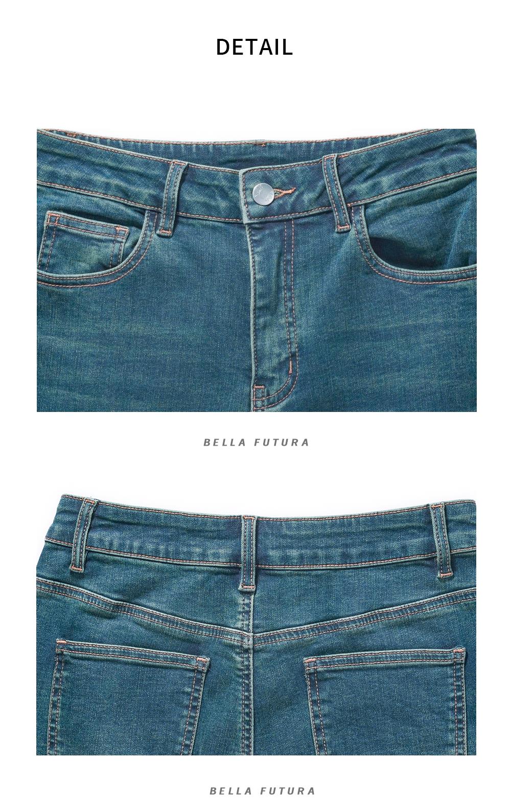 Bella Futura 暮云晕染·桑蚕丝德绒微喇修身牛仔裤