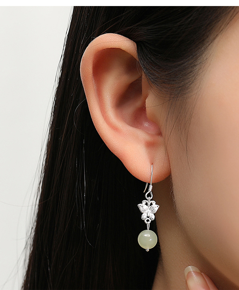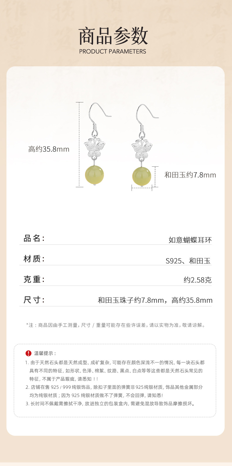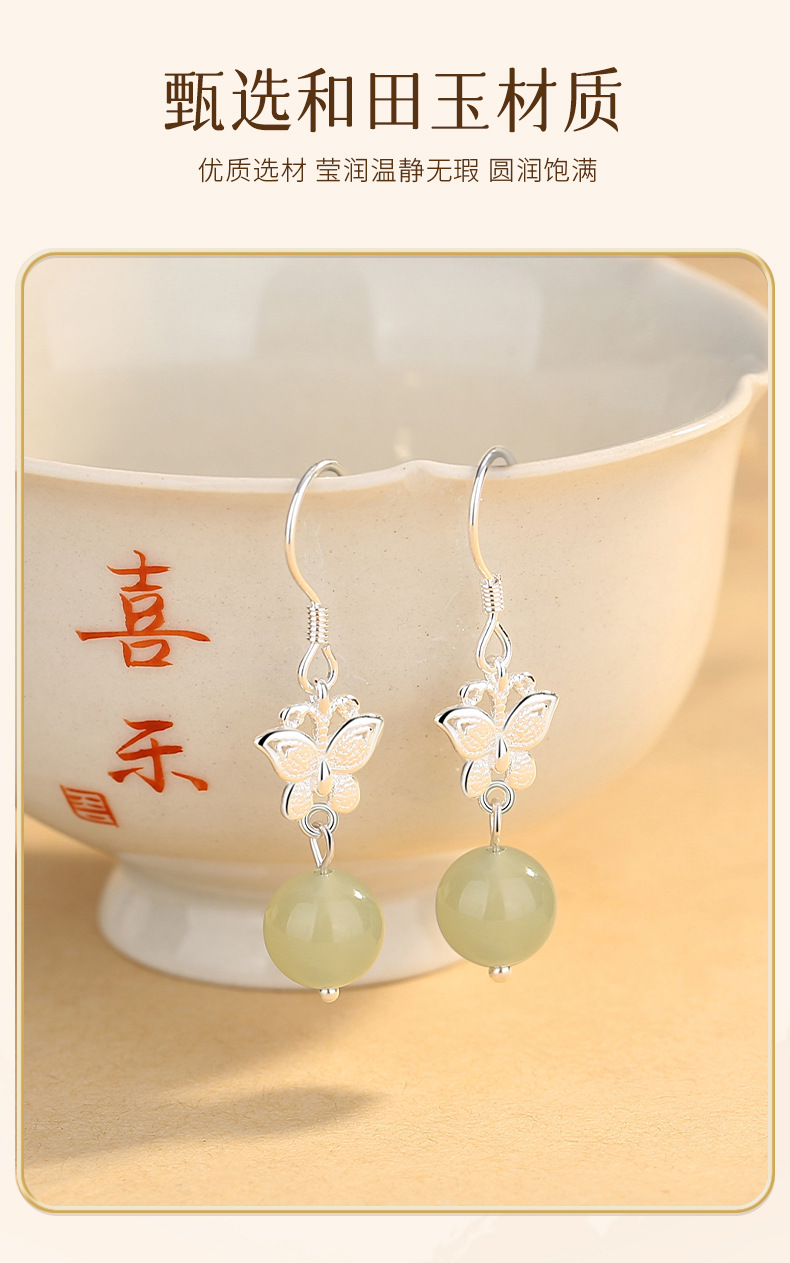 【预售3天】天然和田玉蝴蝶耳钩女S925纯银国潮轻奢小众气质耳饰品DQ11665E