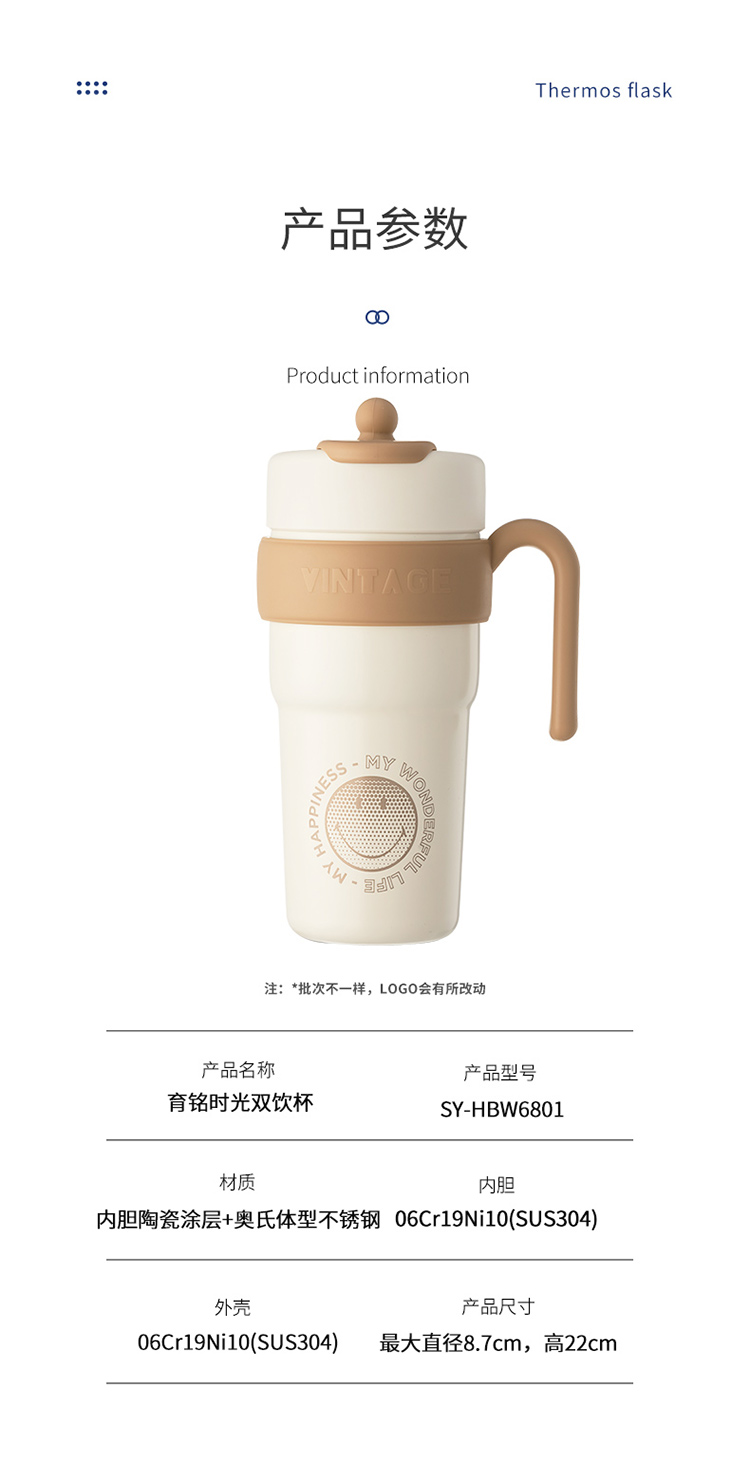 杞冠臻选 | 育铭时光双饮杯 SY-HBW6801 保温 容量680mL 内胆陶瓷涂层+奥氏体型不锈钢