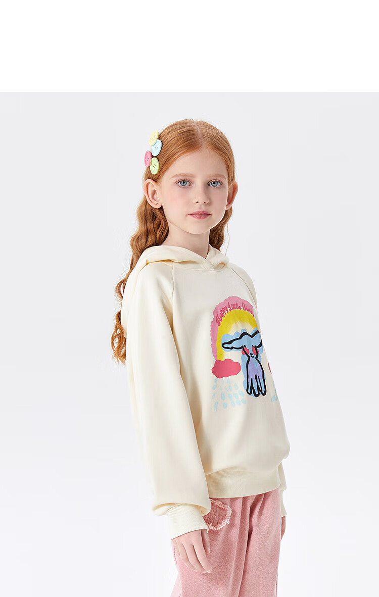 【MQD】童装女大童春新款学院风卡通休闲百搭连帽卫衣