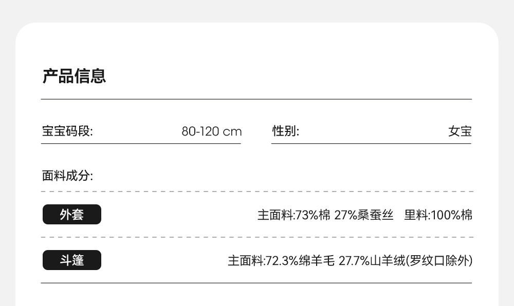 【高定系列】英氏高定鹅绒羽绒服女童斗篷外套两穿羽绒服新款