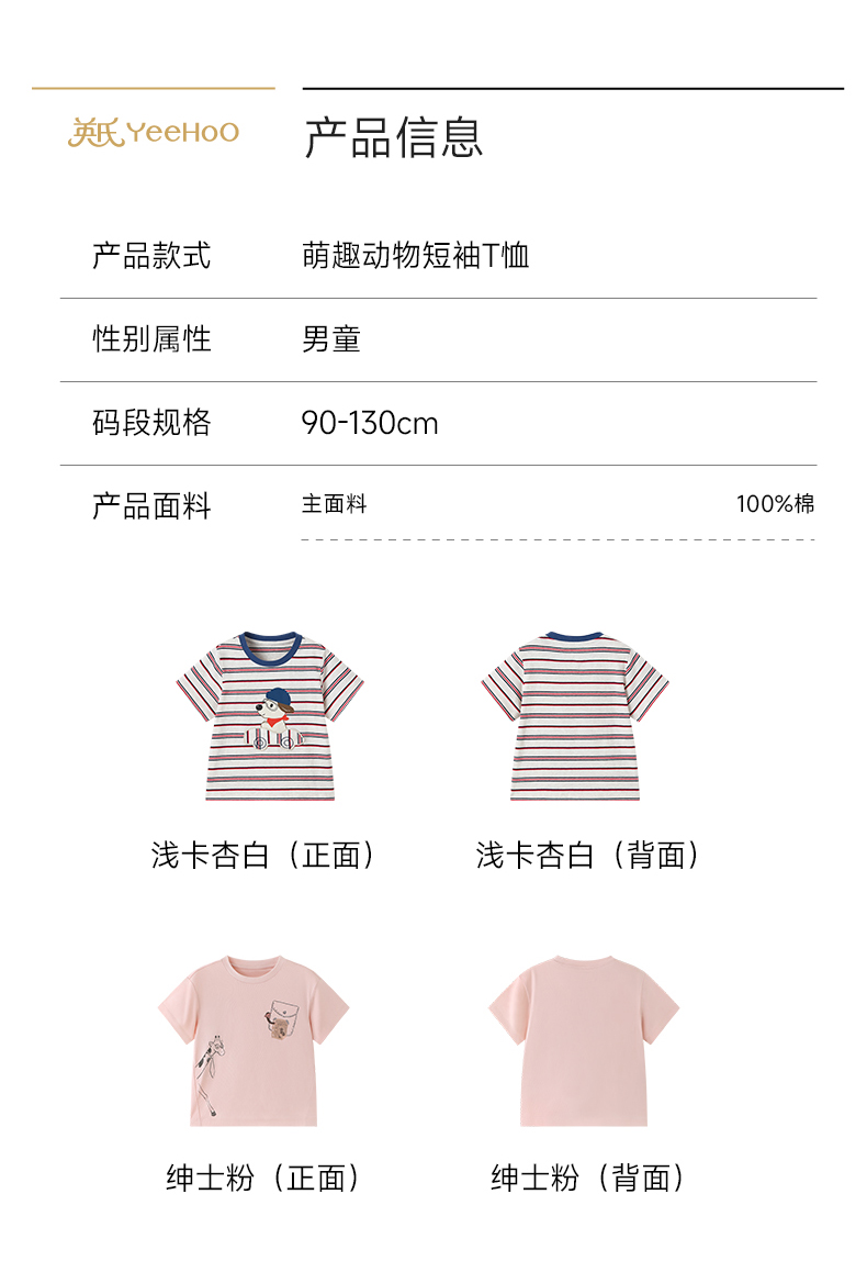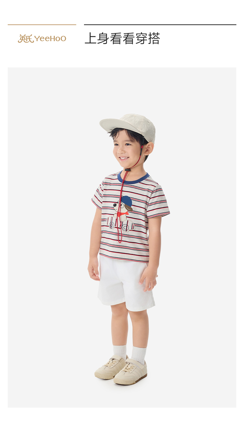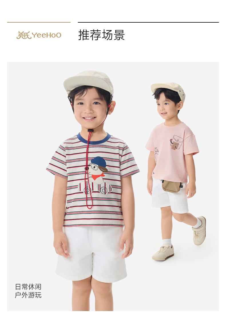 英氏儿童衣服男童夏季百搭短袖圆领T恤纯棉户外休闲套头衫26新款