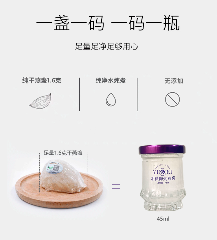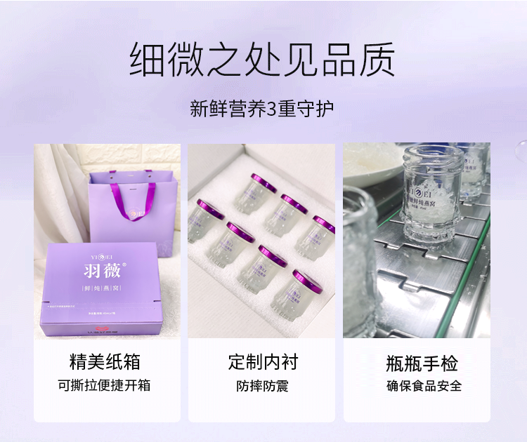 正安优选·羽薇燕窝小紫瓶 溯源鲜炖燕窝,口粮鲜炖燕窝,随吃随定,次日鲜炖发货(周末和法定节假日不发货),方便、可口、营养,每天一瓶,养好气色