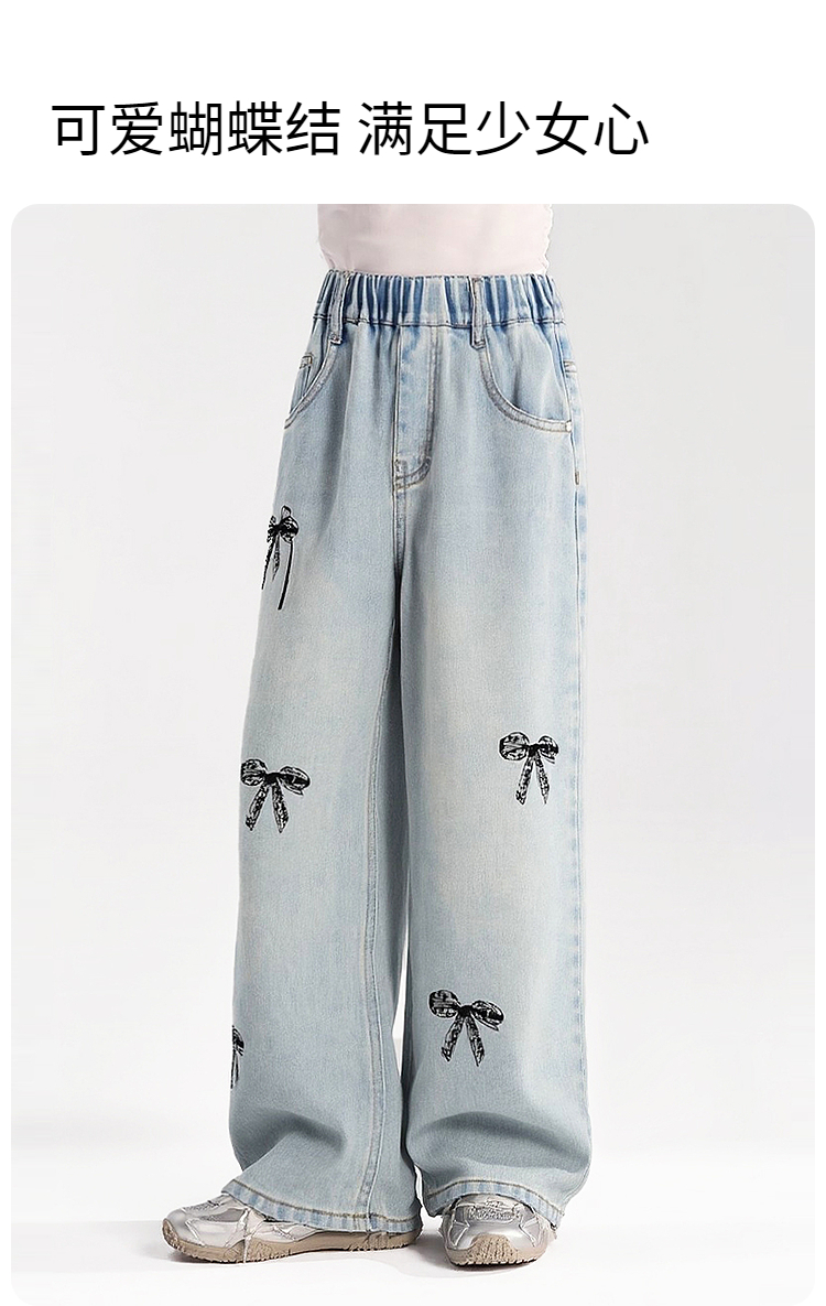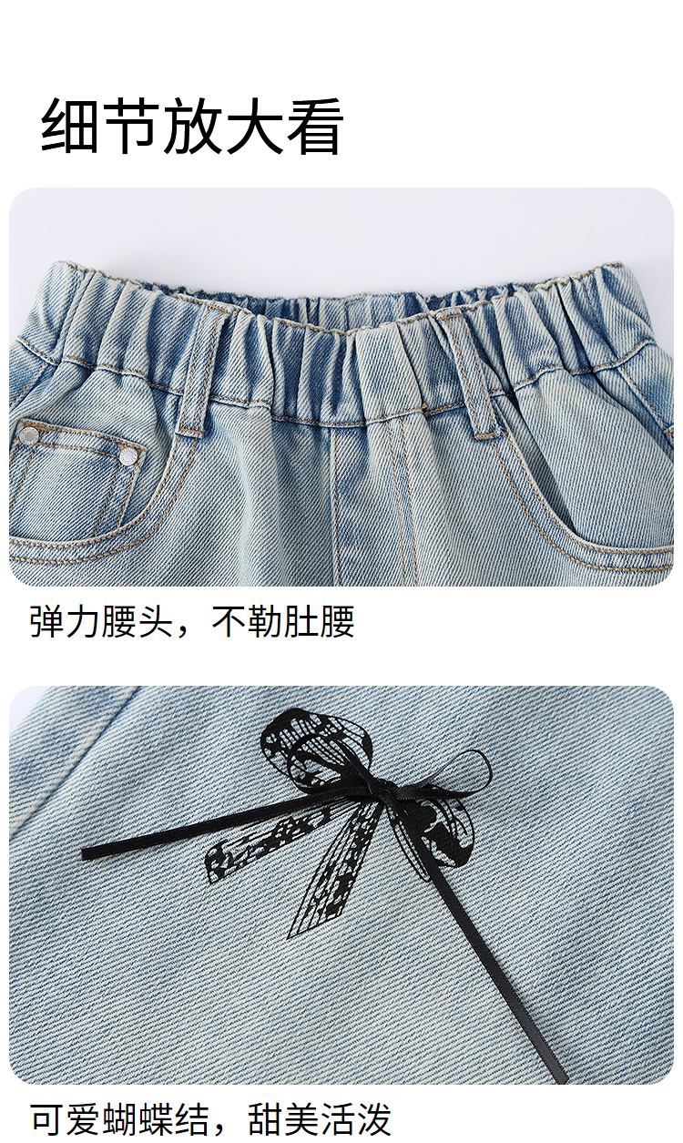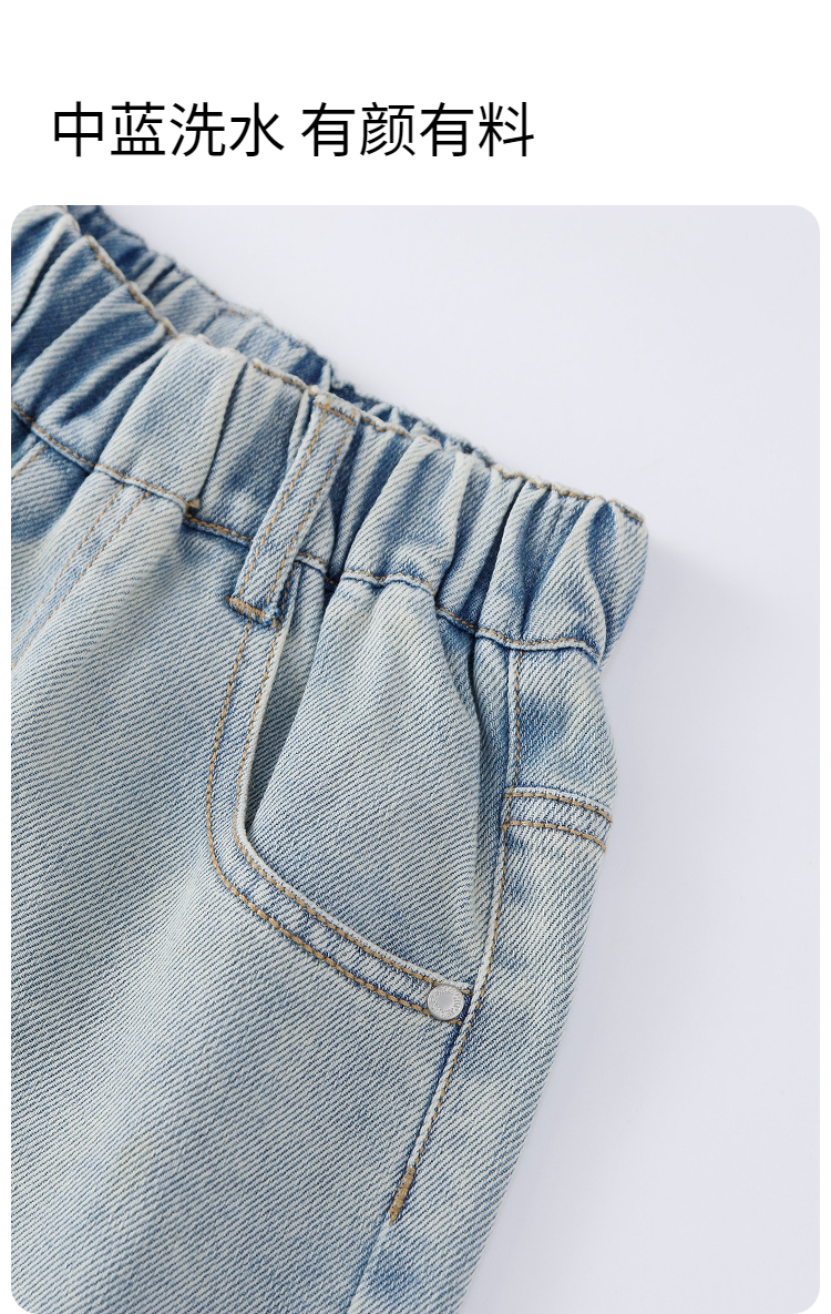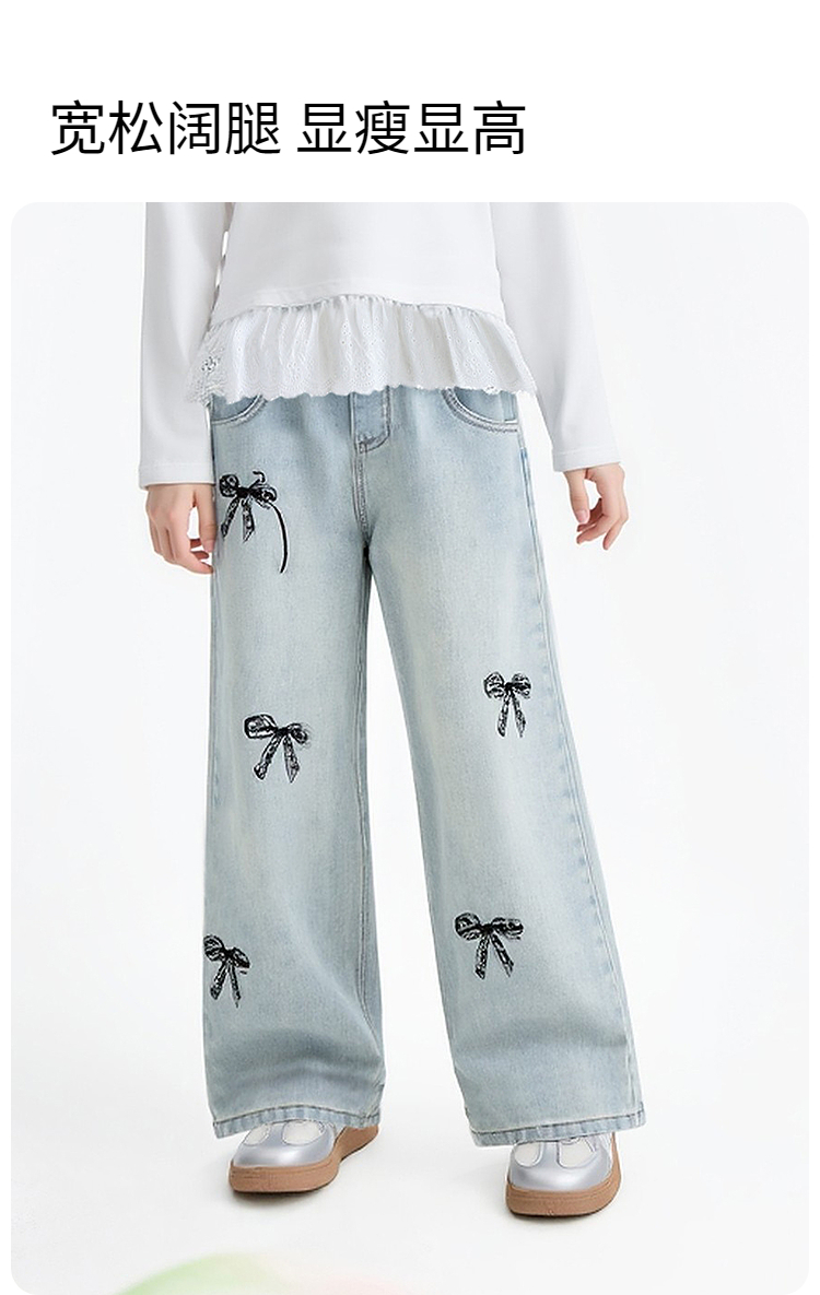 女童全腰牛仔单裤春季新款安奈儿童装EG616666