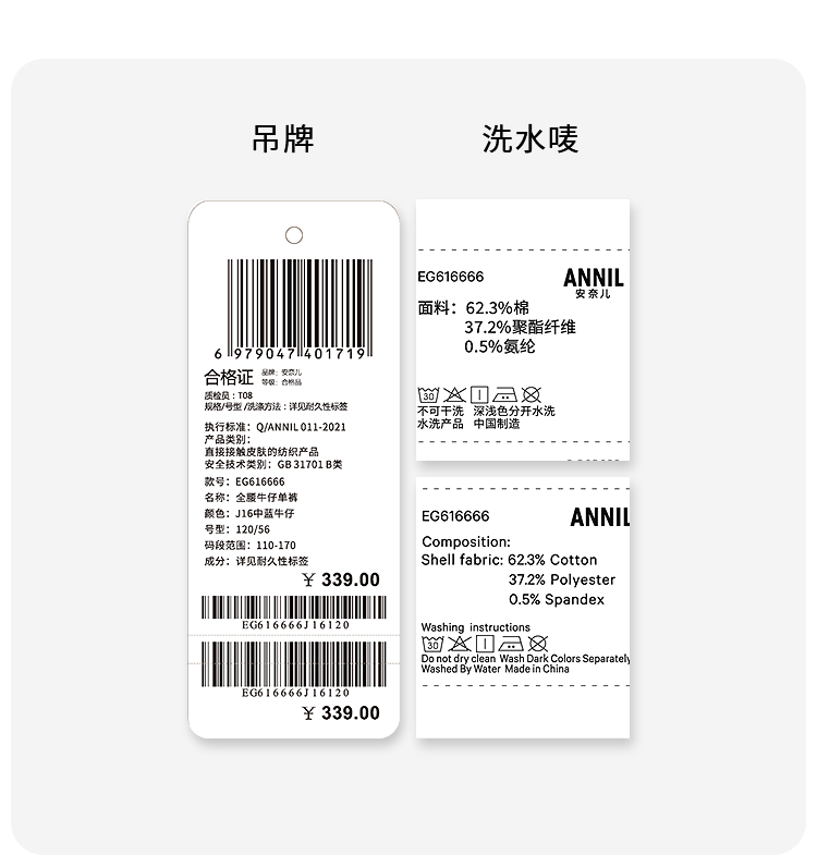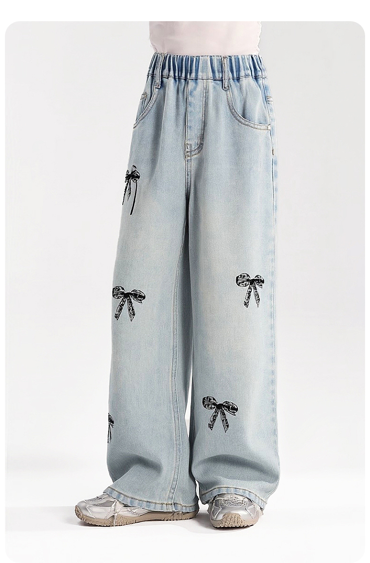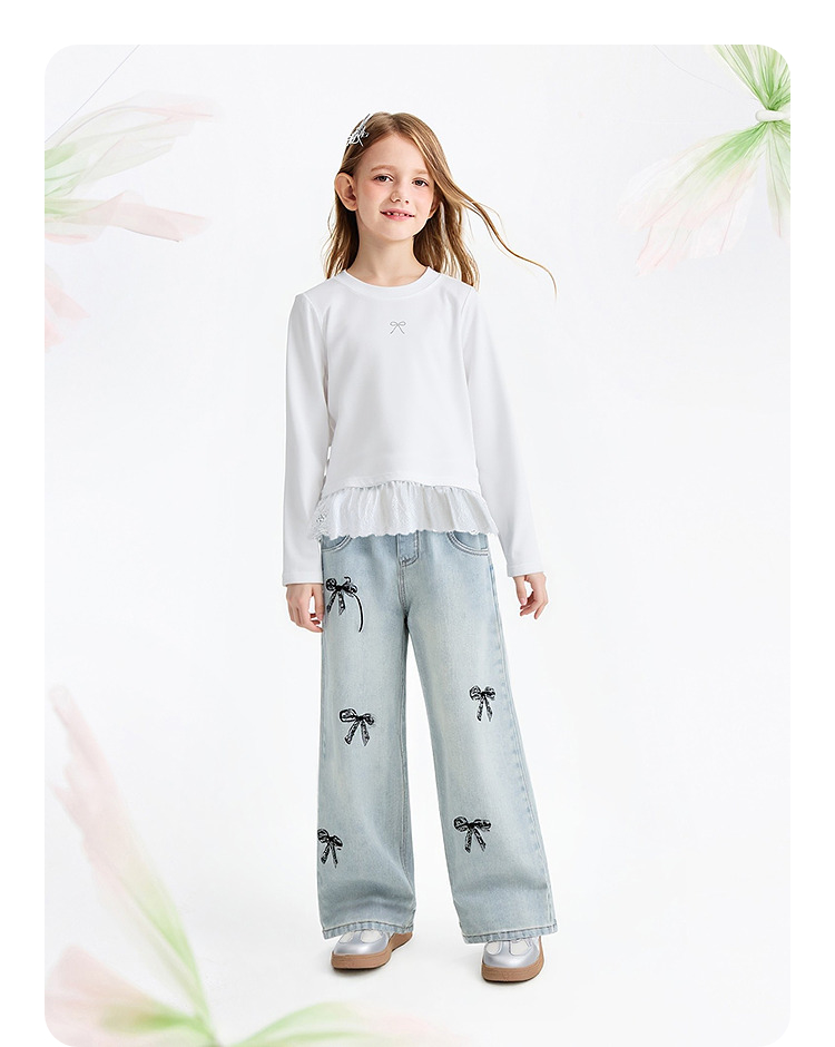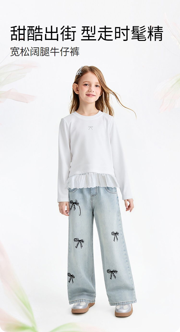 女童全腰牛仔单裤春季新款安奈儿童装EG616666