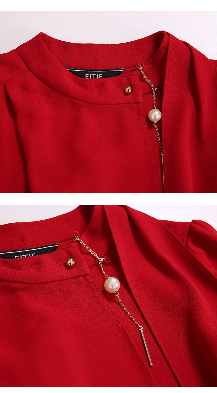 EITIE爱特爱女装秋季新款红色通勤衬衫长袖上衣女 6009709