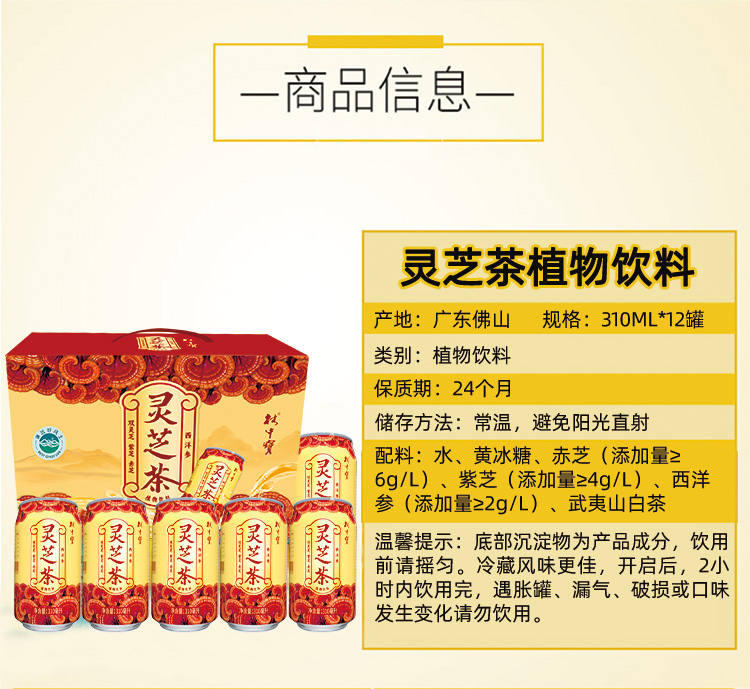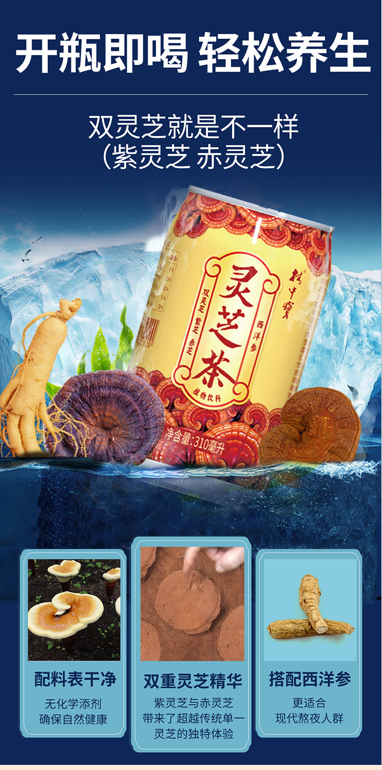 【配料】:水、黄冰糖、赤芝(添加量≥6g/L)、紫芝(添加了≥4g/L)、西洋参(添加了≥2g/L)、武夷山白茶