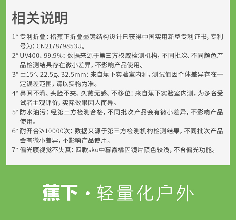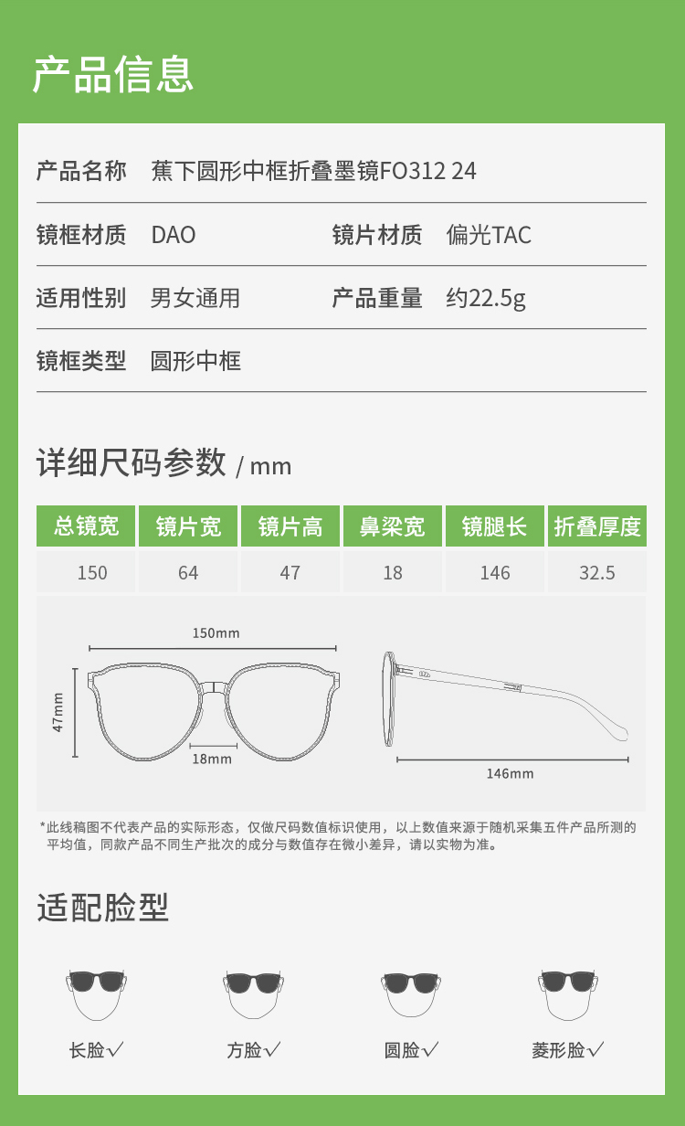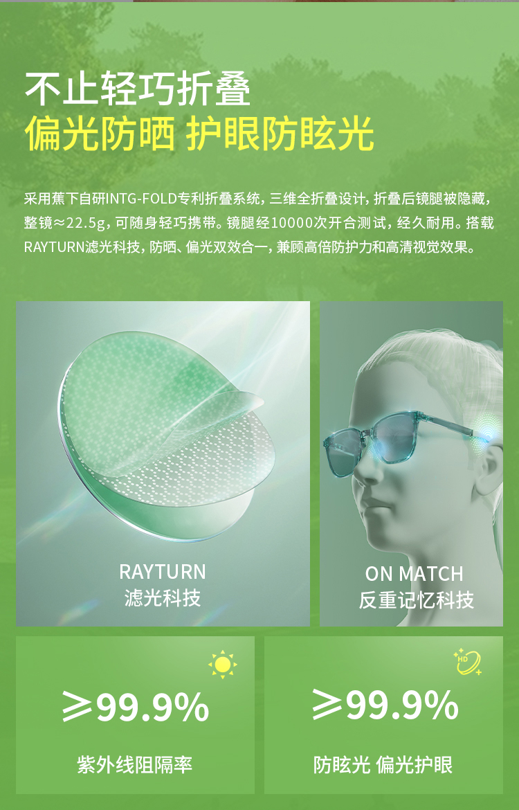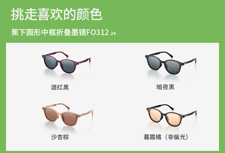蕉下圆形中框折叠墨镜FO31224时尚户外开车遮光防晒偏光太阳镜女