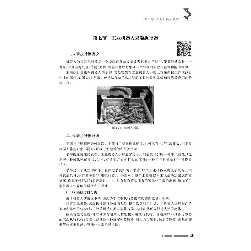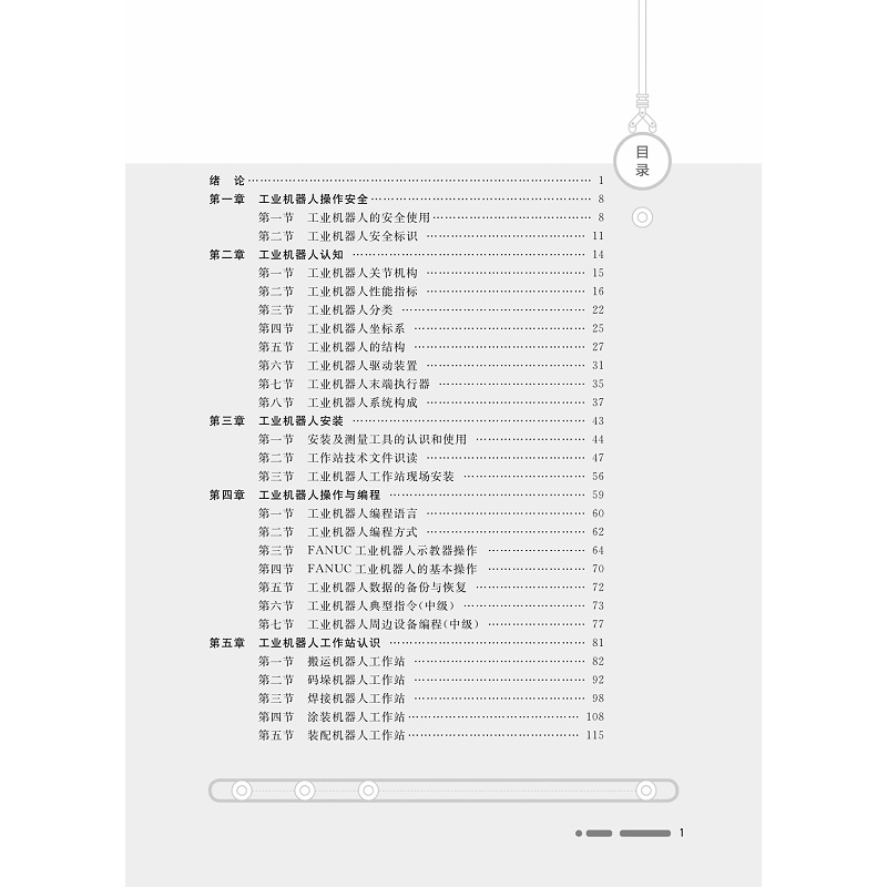 拟编教材11章,本教材采用项目化形式,主要介绍了工业机器人的产生、发展、分类、关联技术和常规操作等概况。重点针对不同类型的工业机器人进行了全面、系统地阐述,并对工业机器人本体的机械结构及安装维护要求进行了具体介绍。适合作为高职高专机器人技术及应用专业的教材。