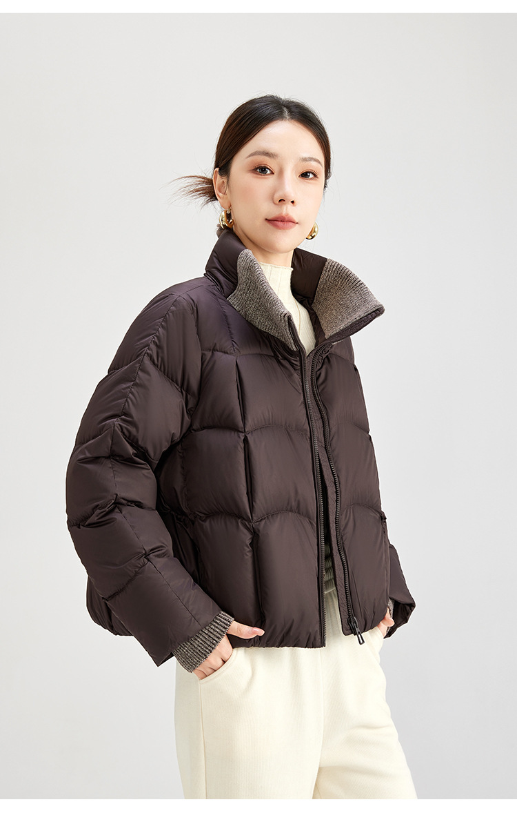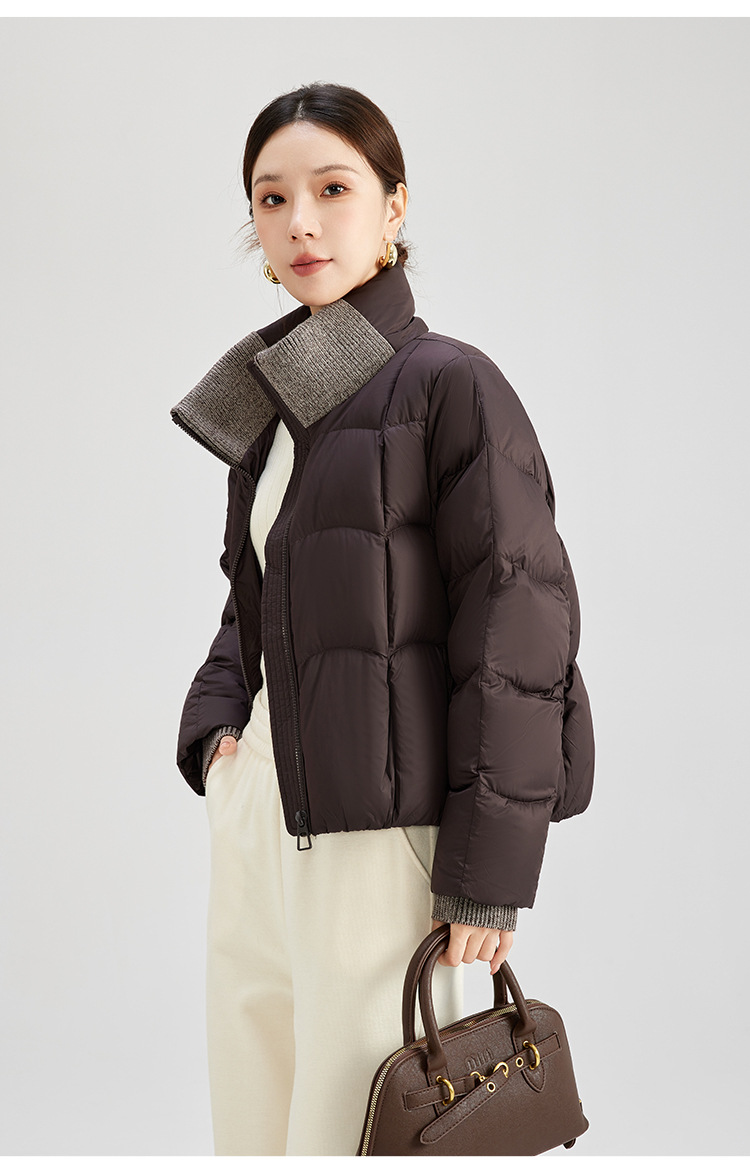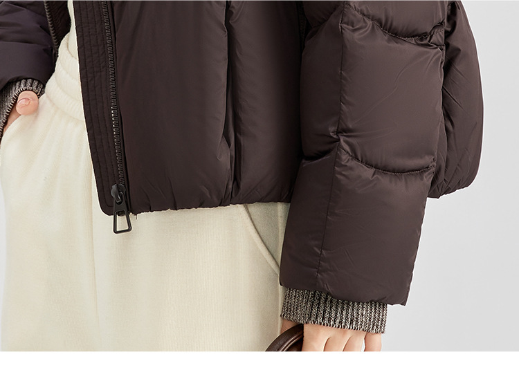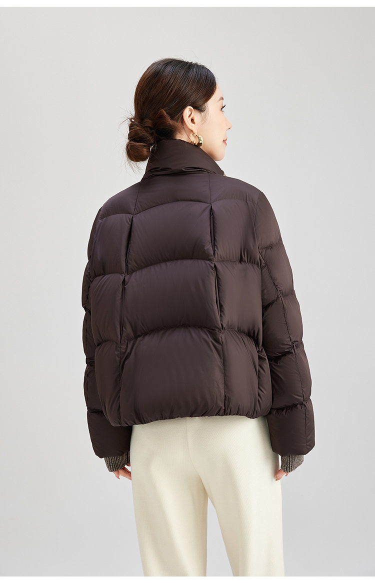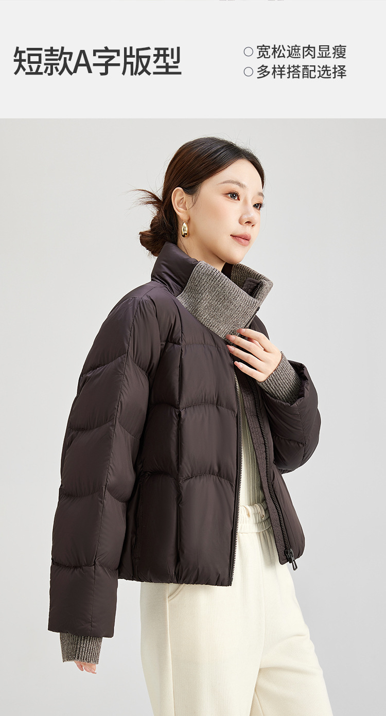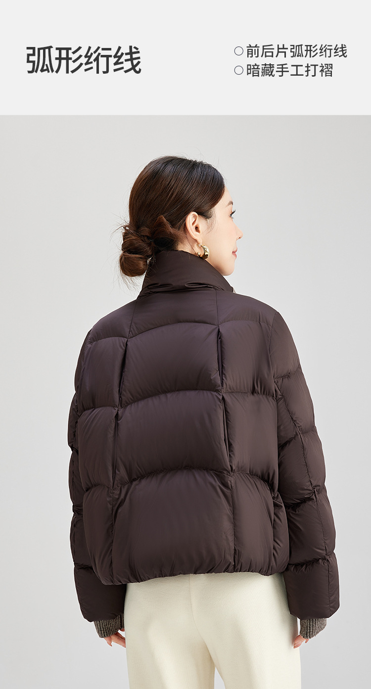 QS冬季新款白鸭绒女装简约纯色高级防寒感短款立领面包服羽绒服5132