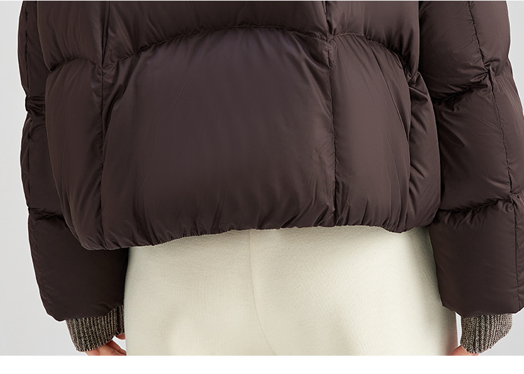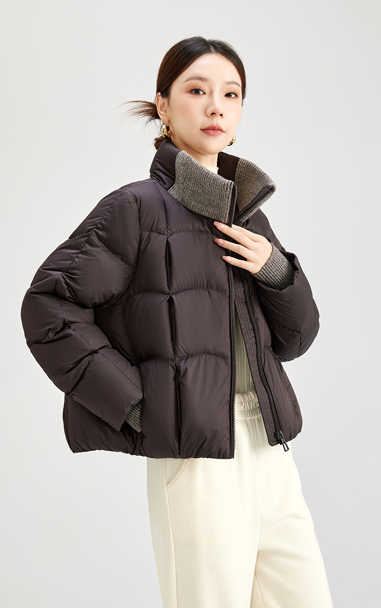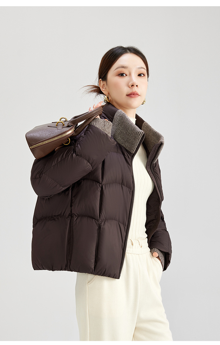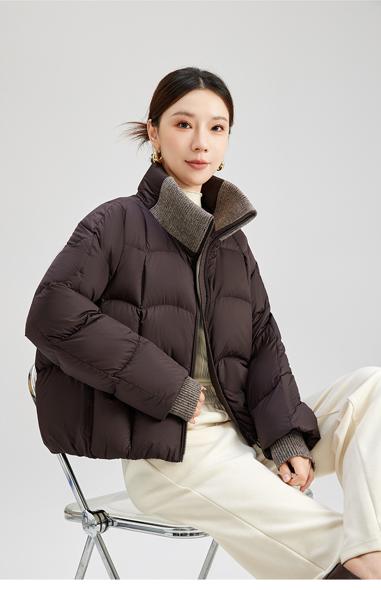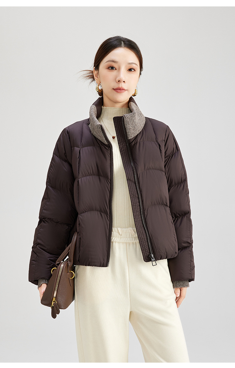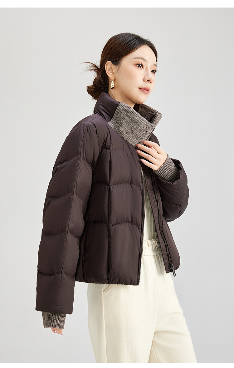 QS冬季新款白鸭绒女装简约纯色高级防寒感短款立领面包服羽绒服5132