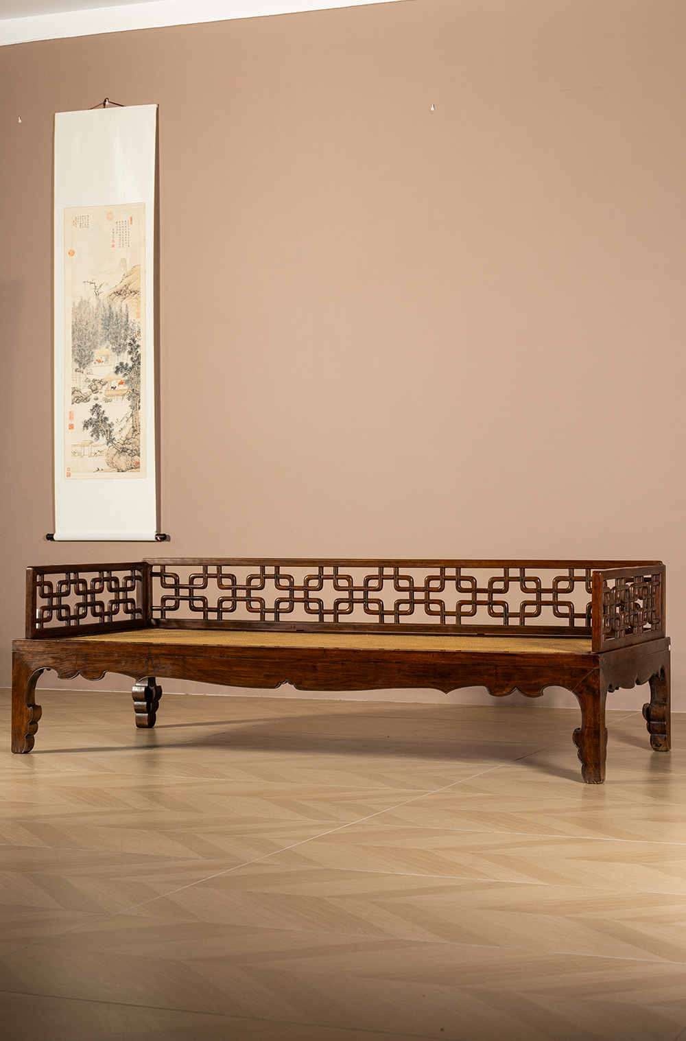 清代 红木镶瘿木嵌寿山石山水人物插屏