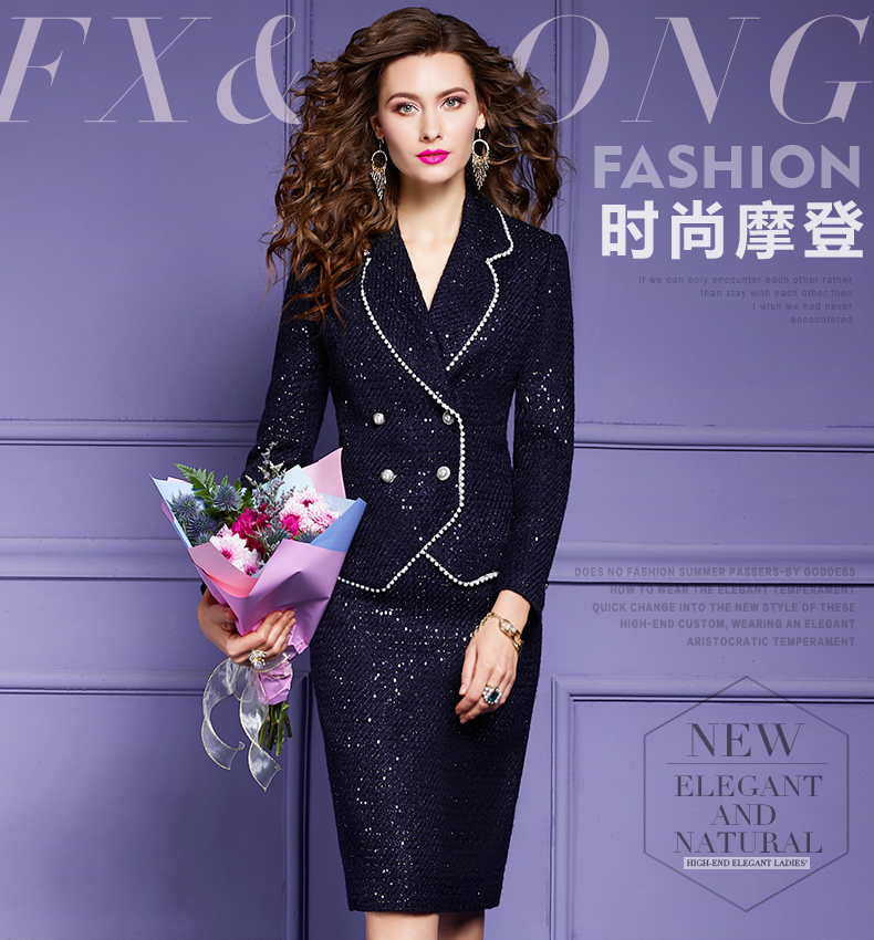FMY43546新款时尚名媛气质小香风修身外套裙子两件套