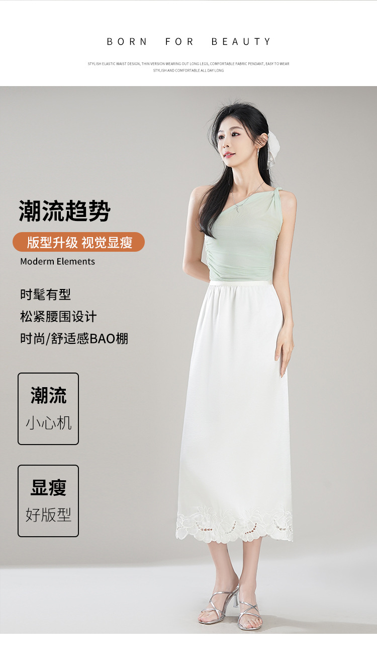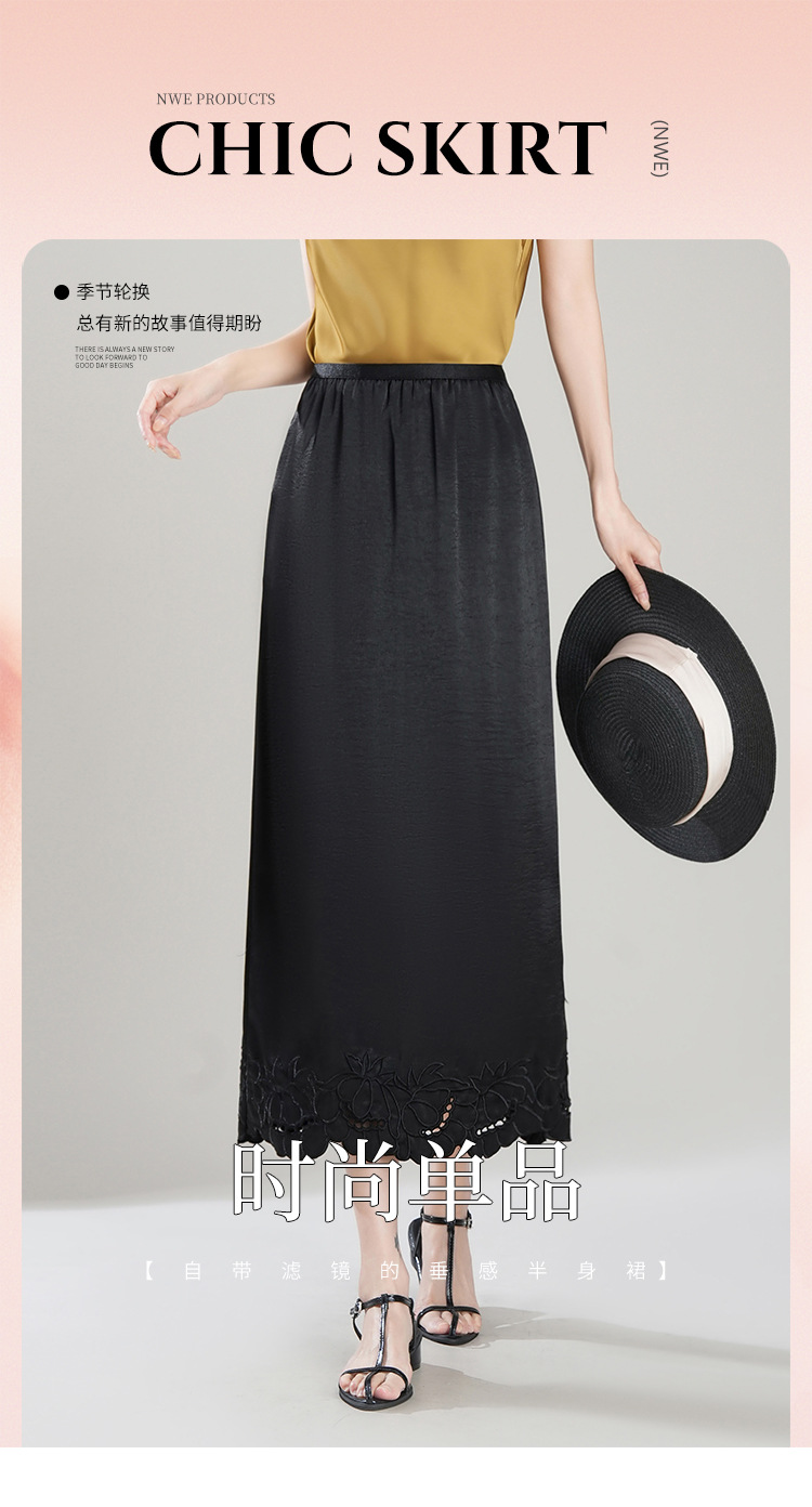 「自」全新升级【铂金会员146/天猫199/差价53】(03643)洛诗琳复古国风镂空刺绣半身裙2025夏季高腰显瘦气质开叉裙