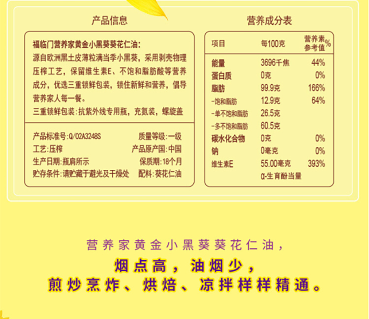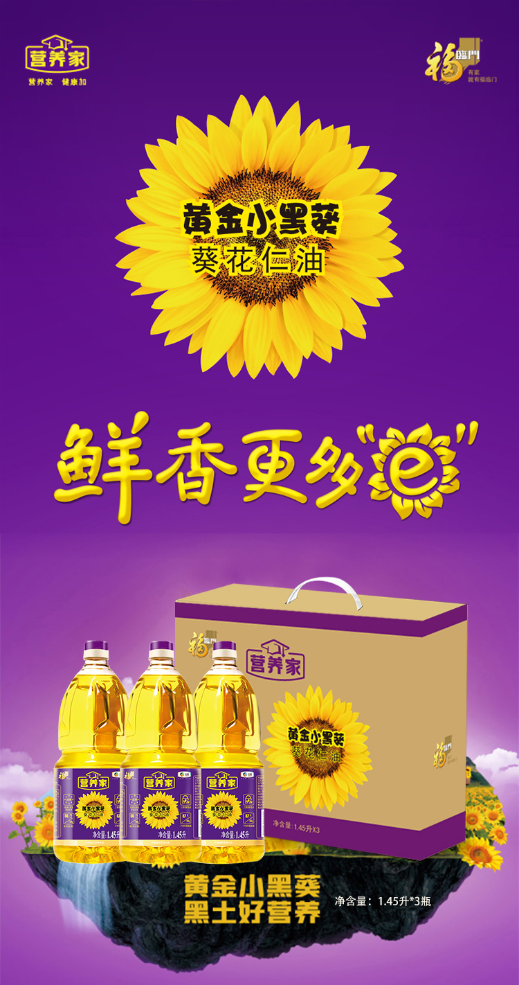 中粮福临门唯粹金典小黑葵葵花仁油礼盒1.45L*3瓶